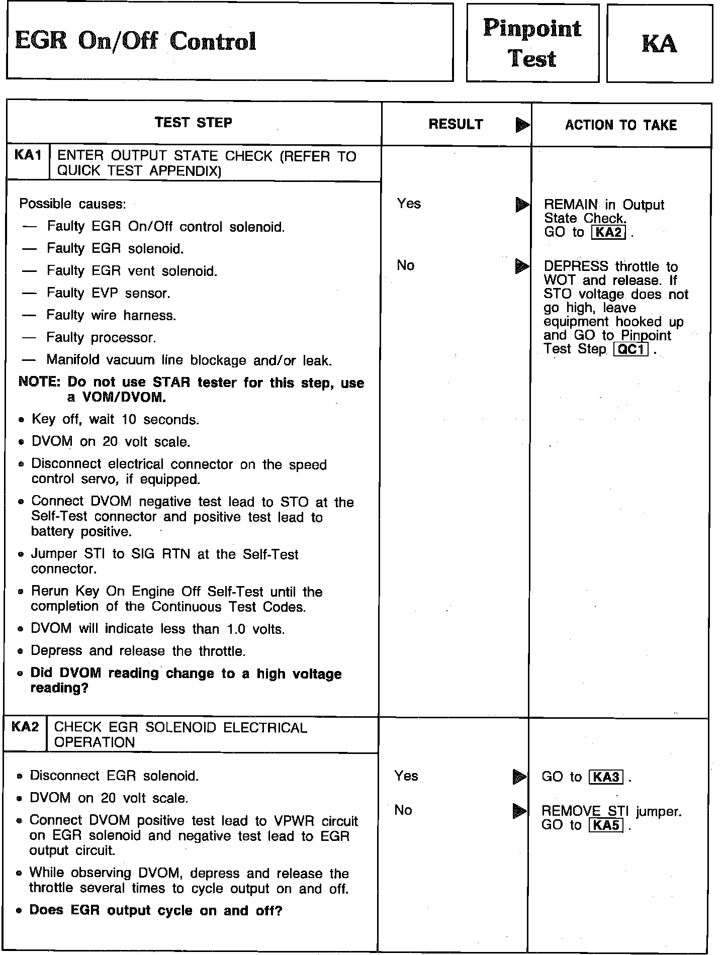 Pinpoint Test KA1 & KA2 - EGR On/Off Control: