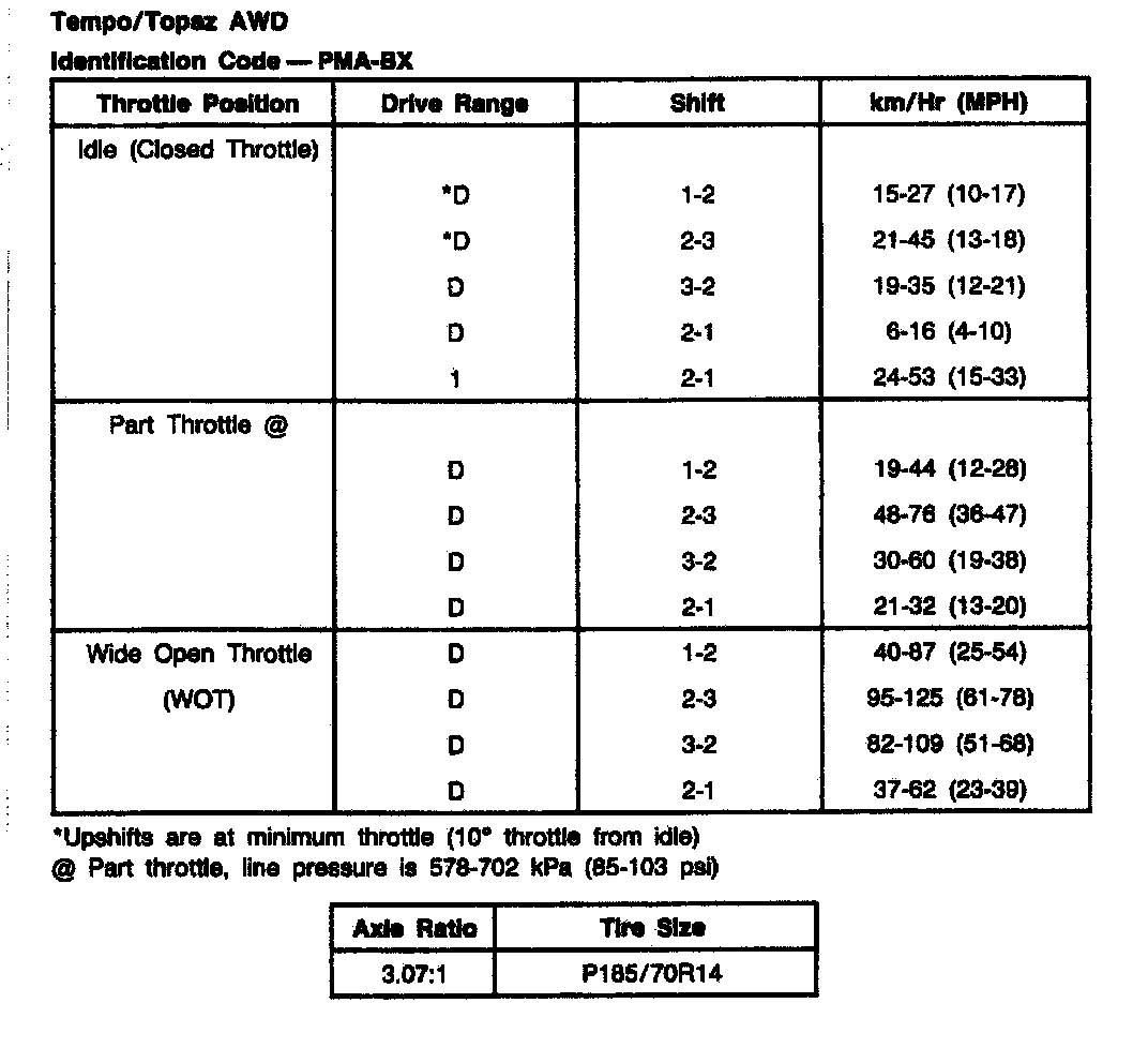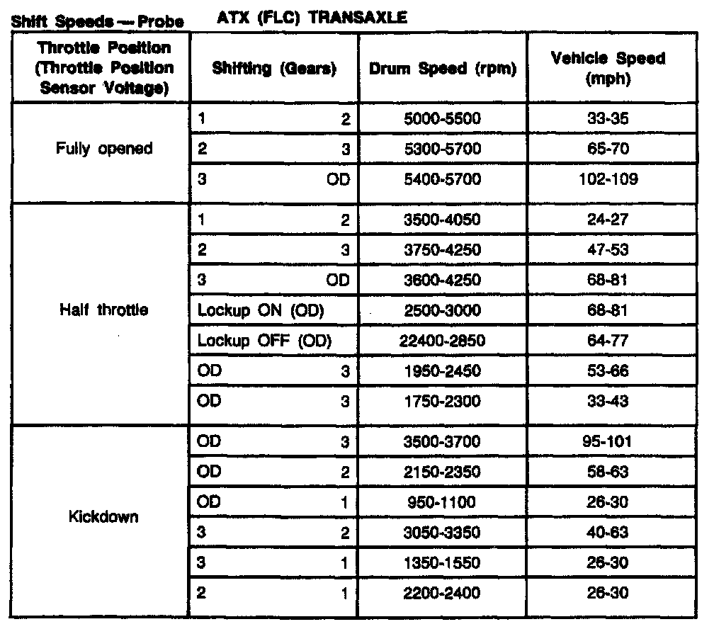 AXOD 4-spd A/T, Shift Speeds (Festiva):