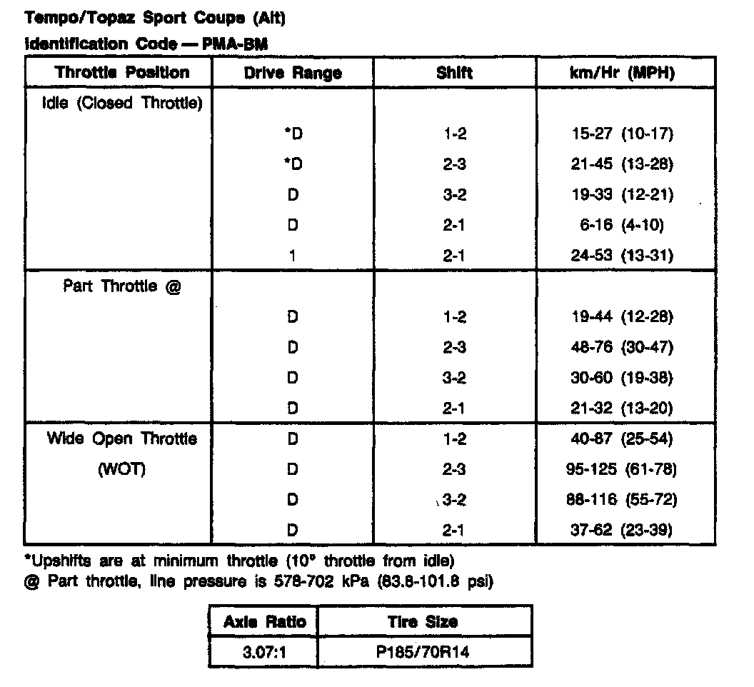ATX 3-spd A/T, Shift Speeds (Tempo/Topaz):