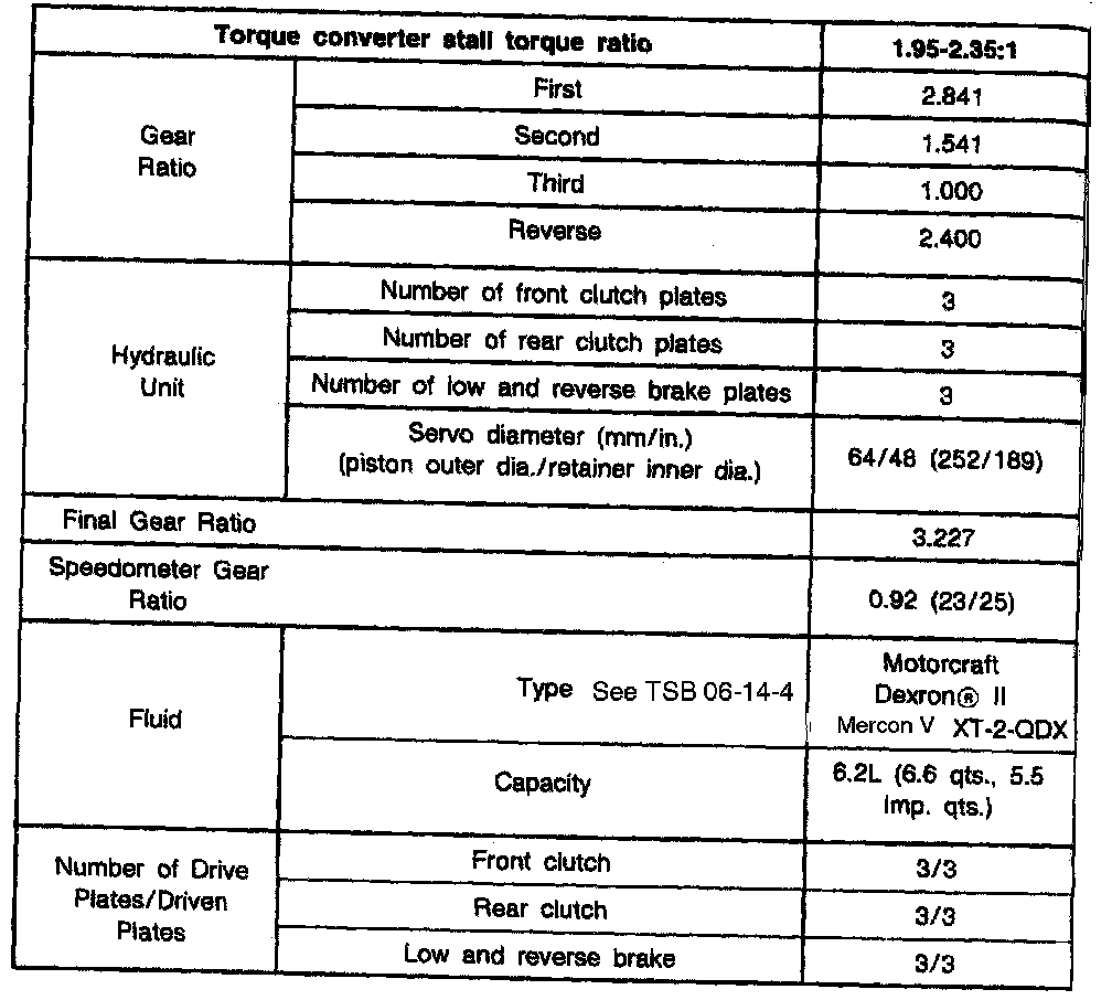 Home >> Ford >> 1990 >> Taurus L4-153 2.5L HSC >> Repair and Diagnosis >> Specifications >> Mechanical Specifications >> Automatic Transmission/Transaxle >> System Specifications >> A/T Technical Data