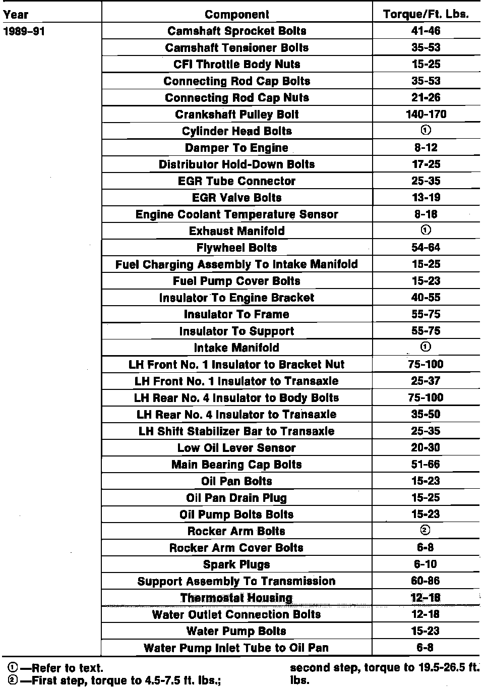 Tightening Specifications: