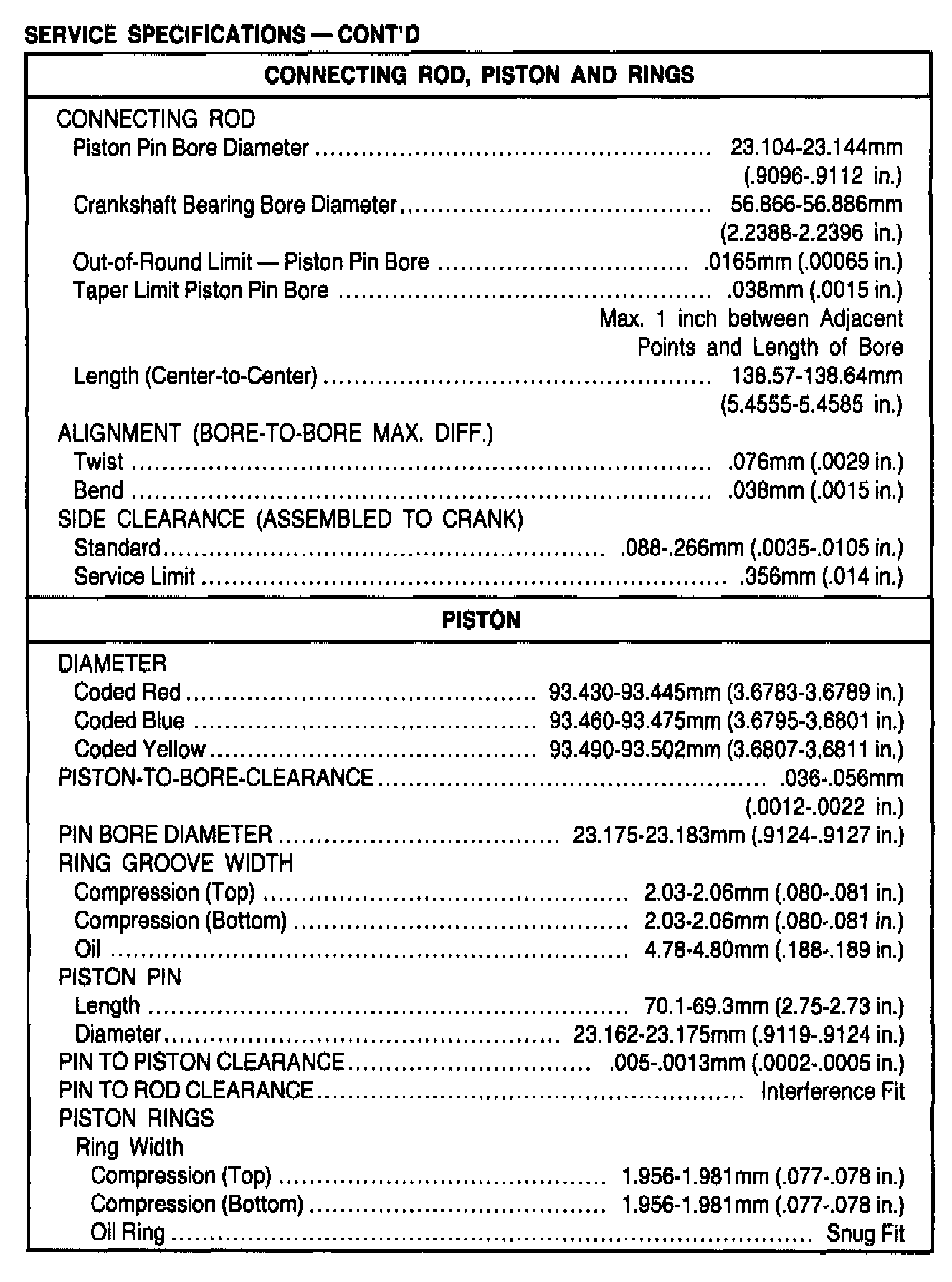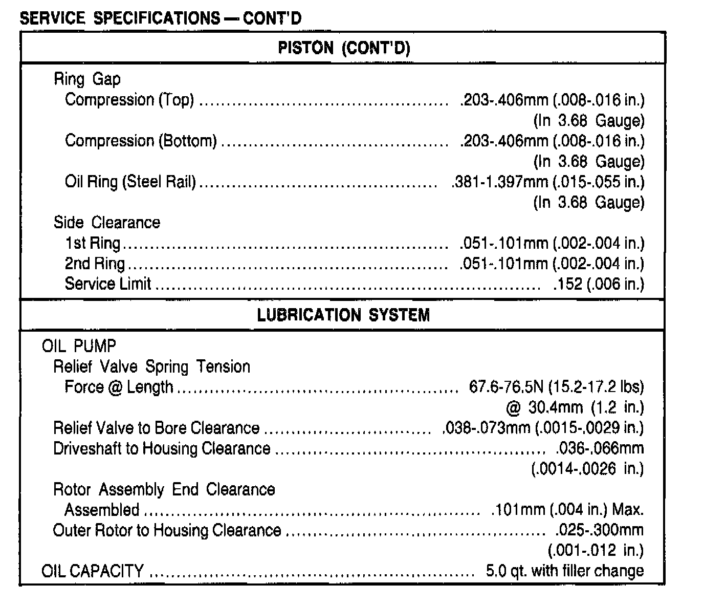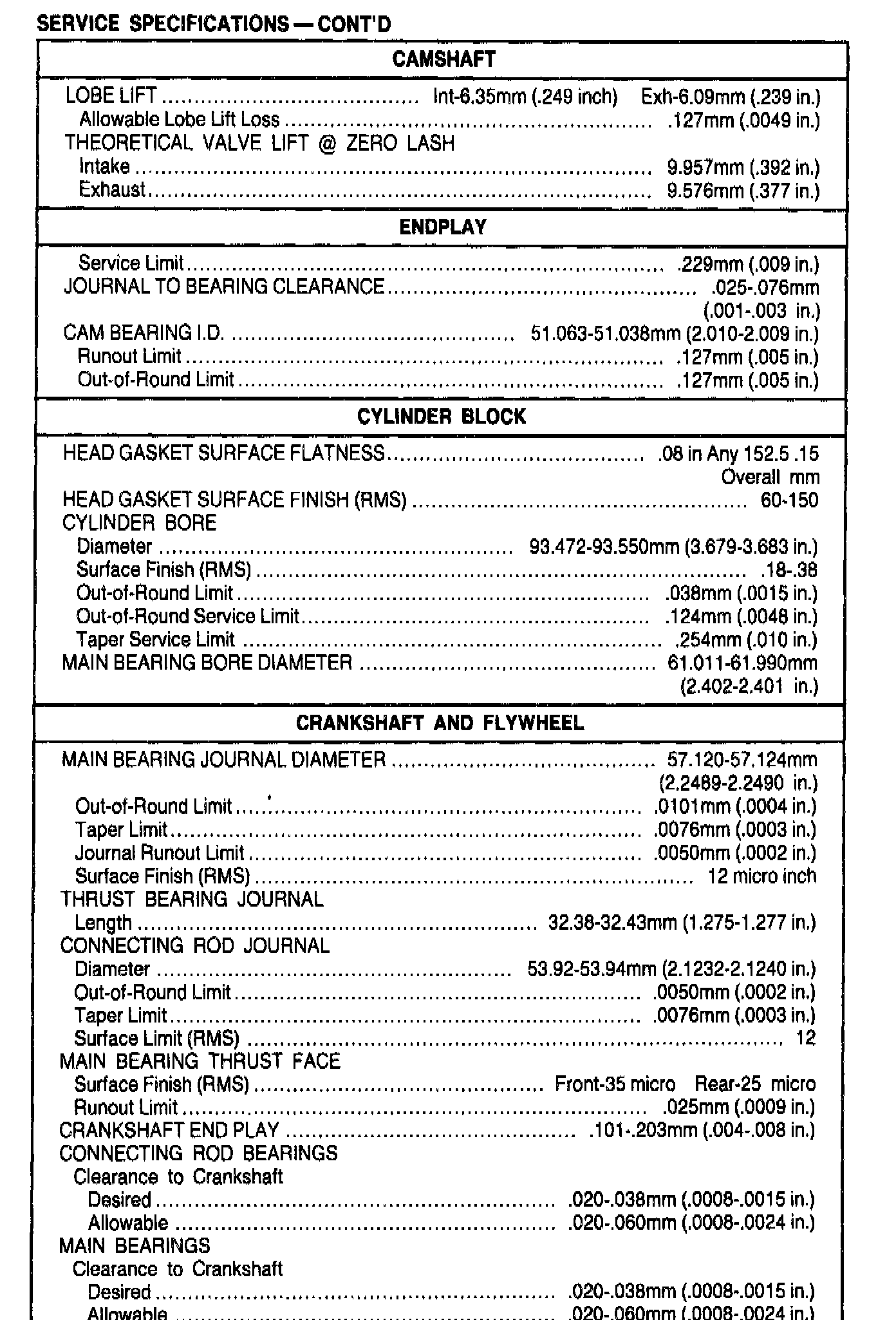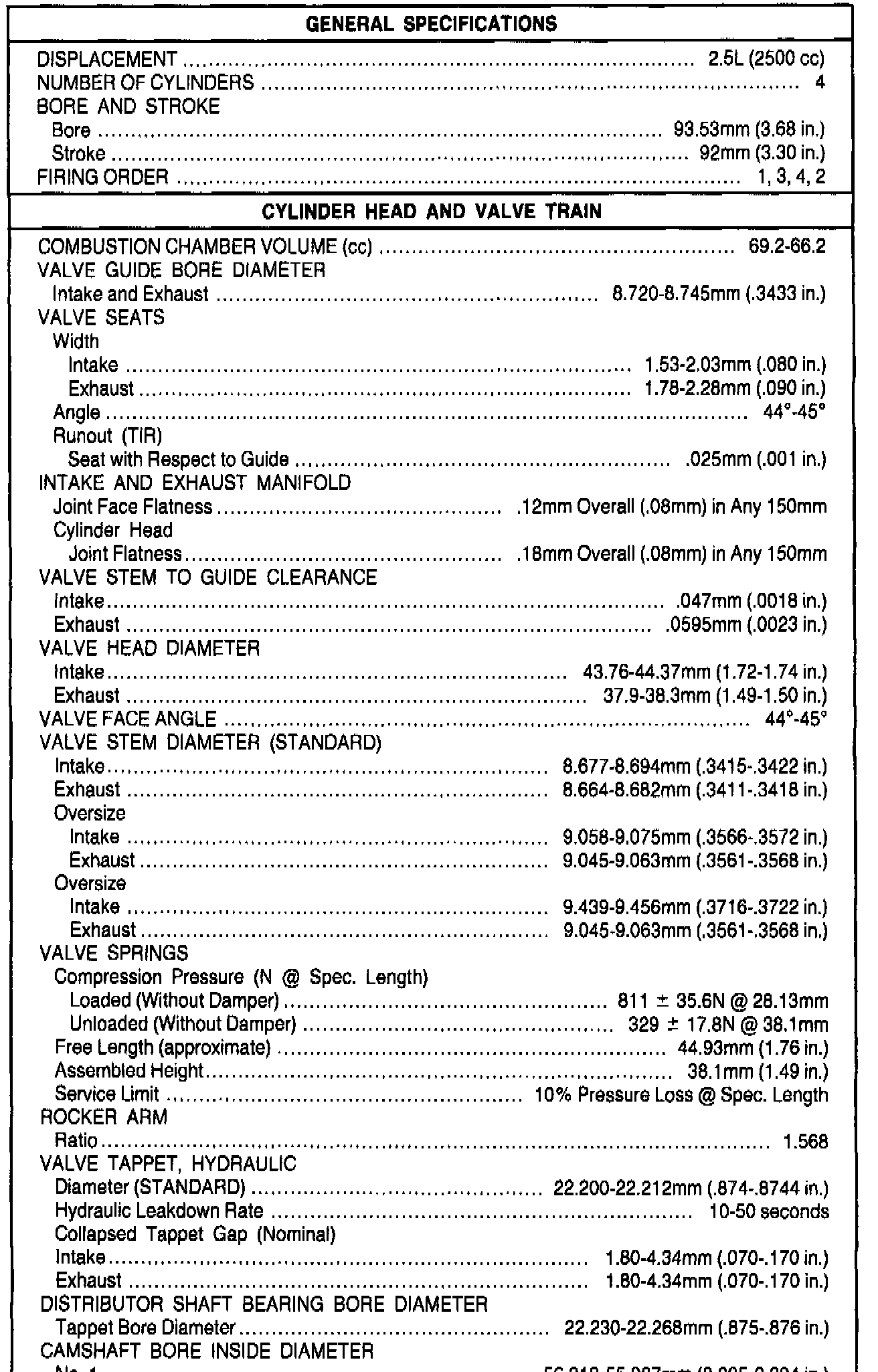 General Engine Specifications