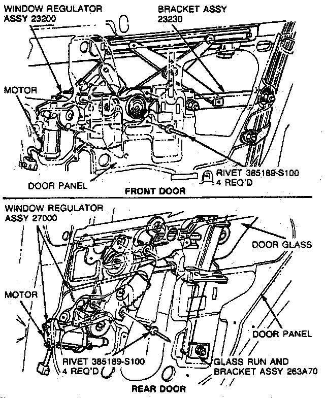 Home >> Ford >> 1990 >> Taurus L4-153 2.5L HSC >> Repair and Diagnosis >> Windows and Glass >> Windows >> Power Window Motor >> Service and Repair >> Window Regulator