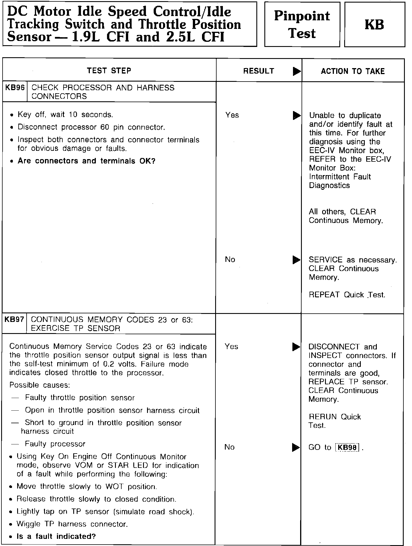Pinpoint Test KB96 Thru KB97 - DC Motor Idle Speed Control/Idle Tracking Switch/TPS:
