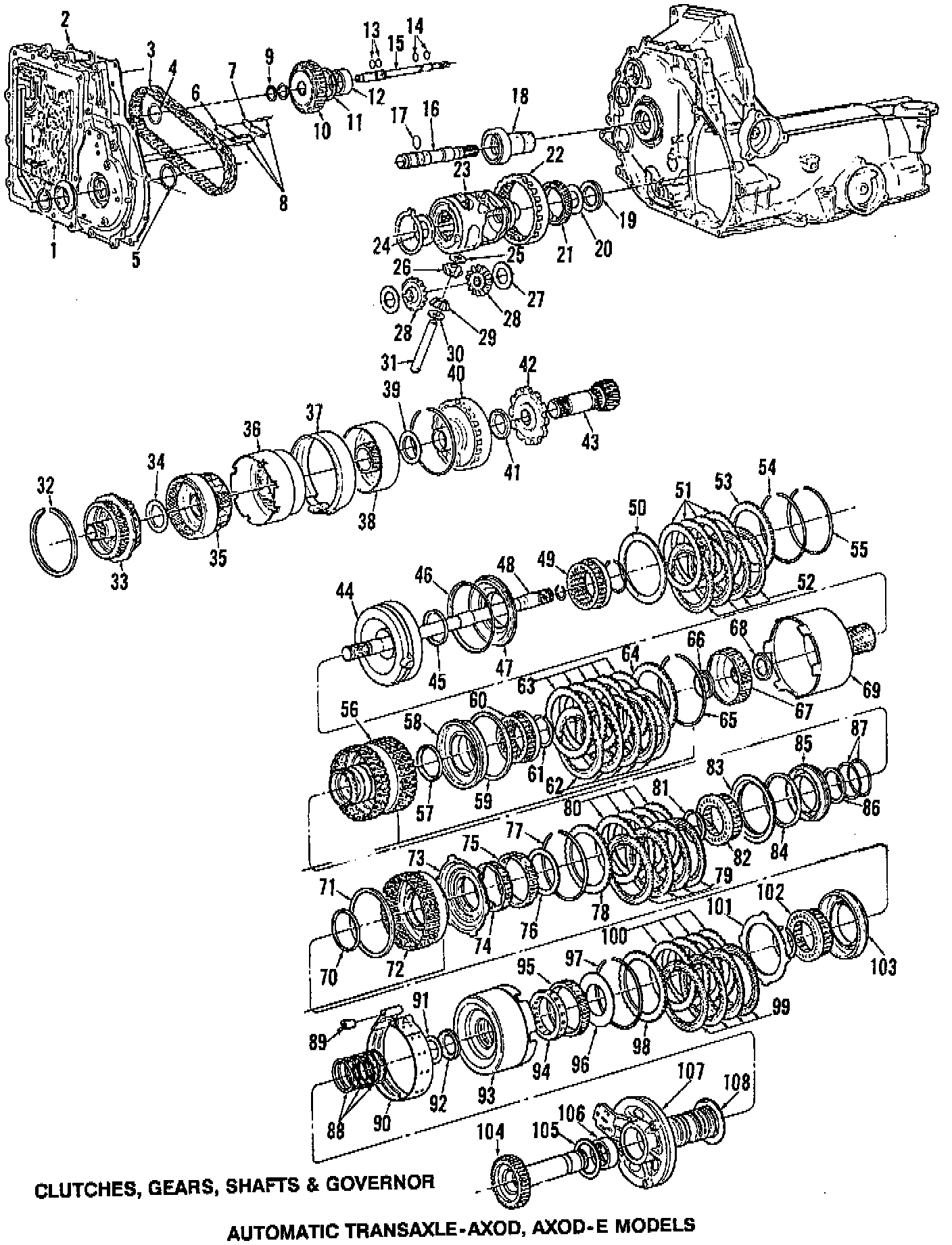 Clutches, Gears, Shafts & Governor, AXOD, AXOD-E, AX4S: