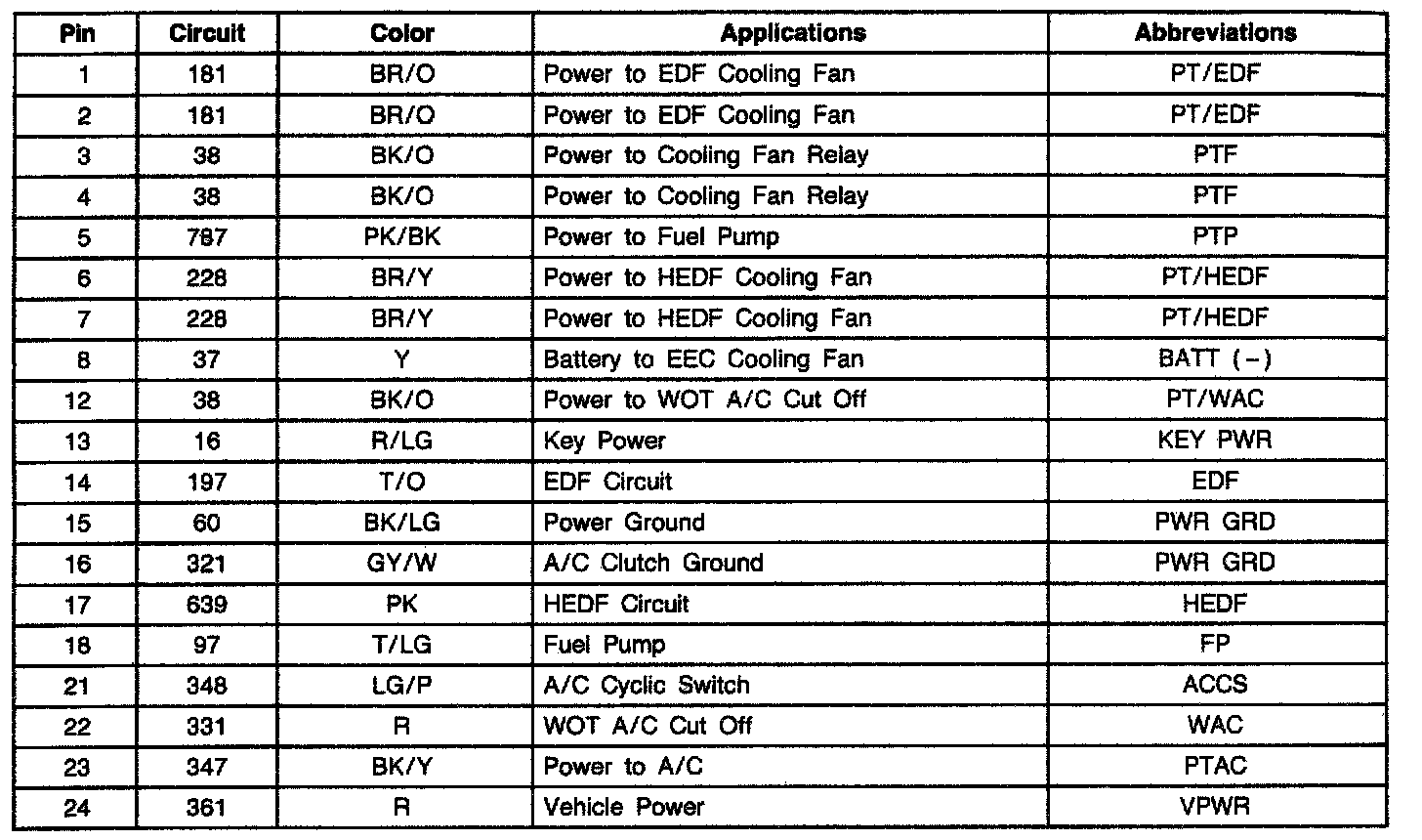 Integrated Relay Controller Module (IRCM) Pin Usage: