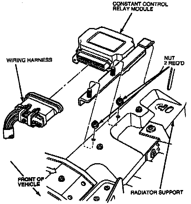 2. Disconnect electrical connector. Remove integrated relay control assembly located on radiator support.