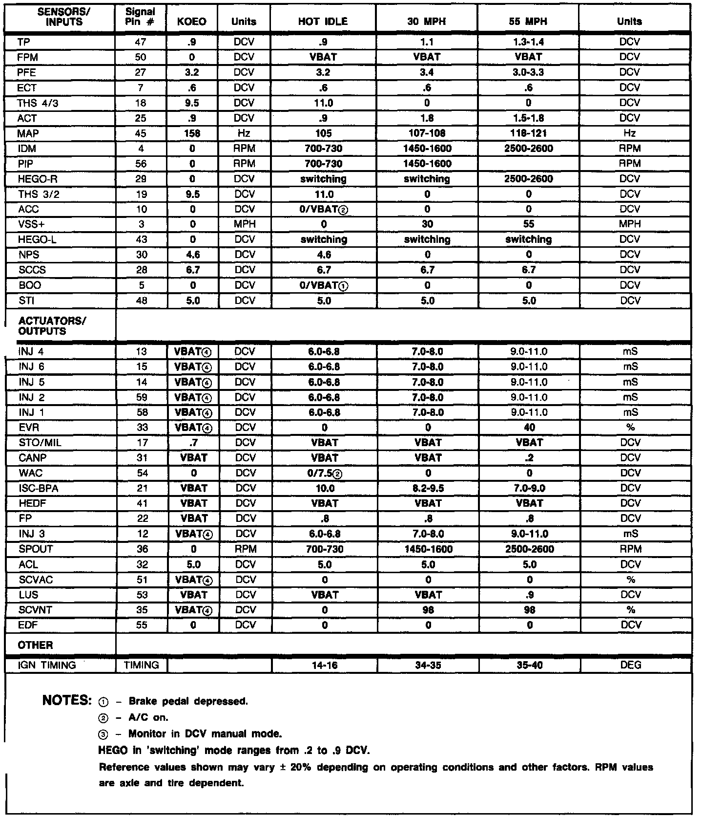 Home >> Ford >> 1990 >> Taurus V6-232 3.8L >> Repair and Diagnosis >> Powertrain Management >> Computers and Control Systems >> Testing and Inspection >> Scan Tool Testing and Procedures >> Normal Scan Data Values (Includes PIDs) >> Diagnostic Reference Values