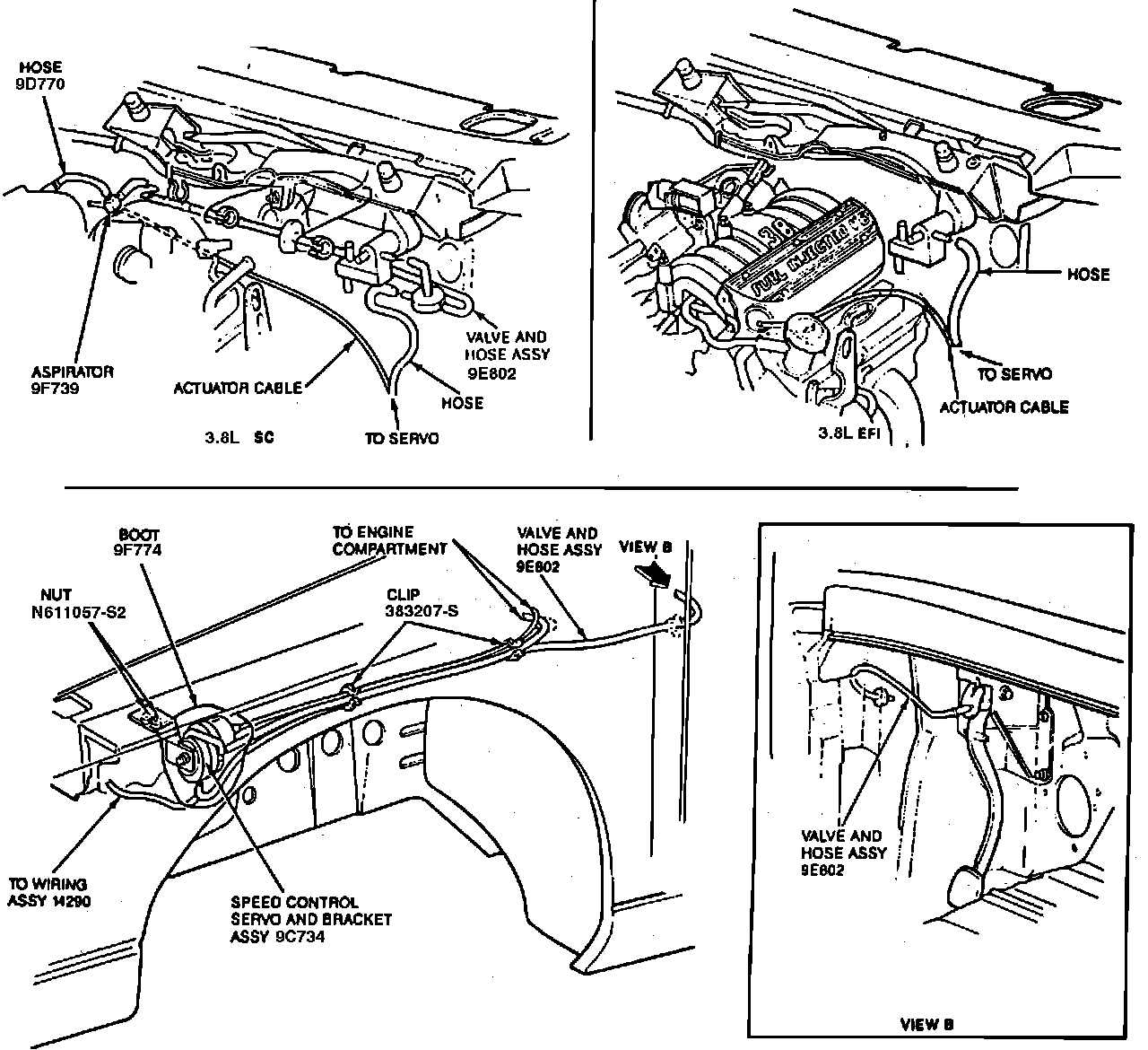 12. On all models, remove two actuator cable cover-to-servo retaining nuts, then the cover, cable, and rubber boot.