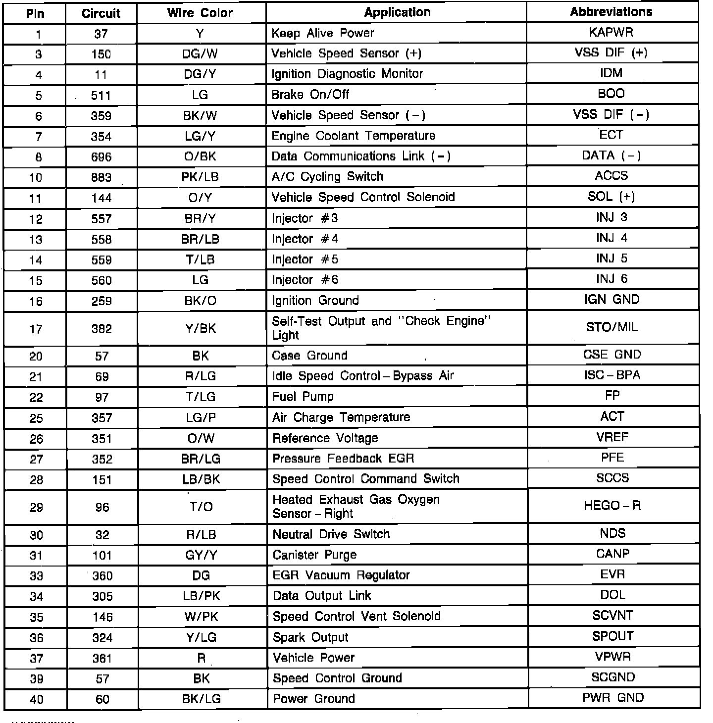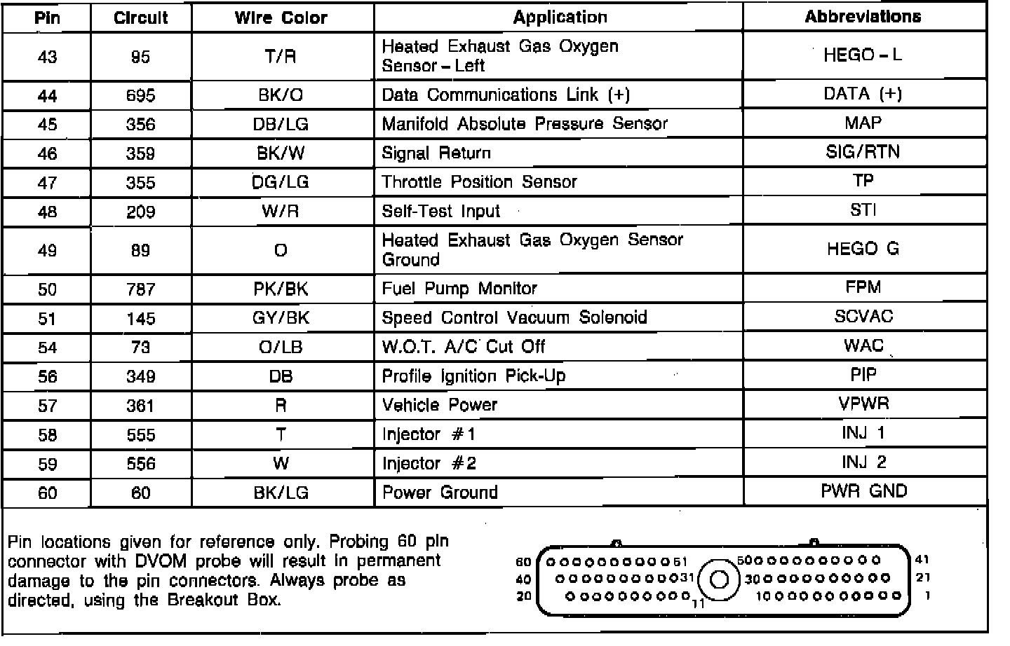 EEC-IV Module Connector Pin Usage: