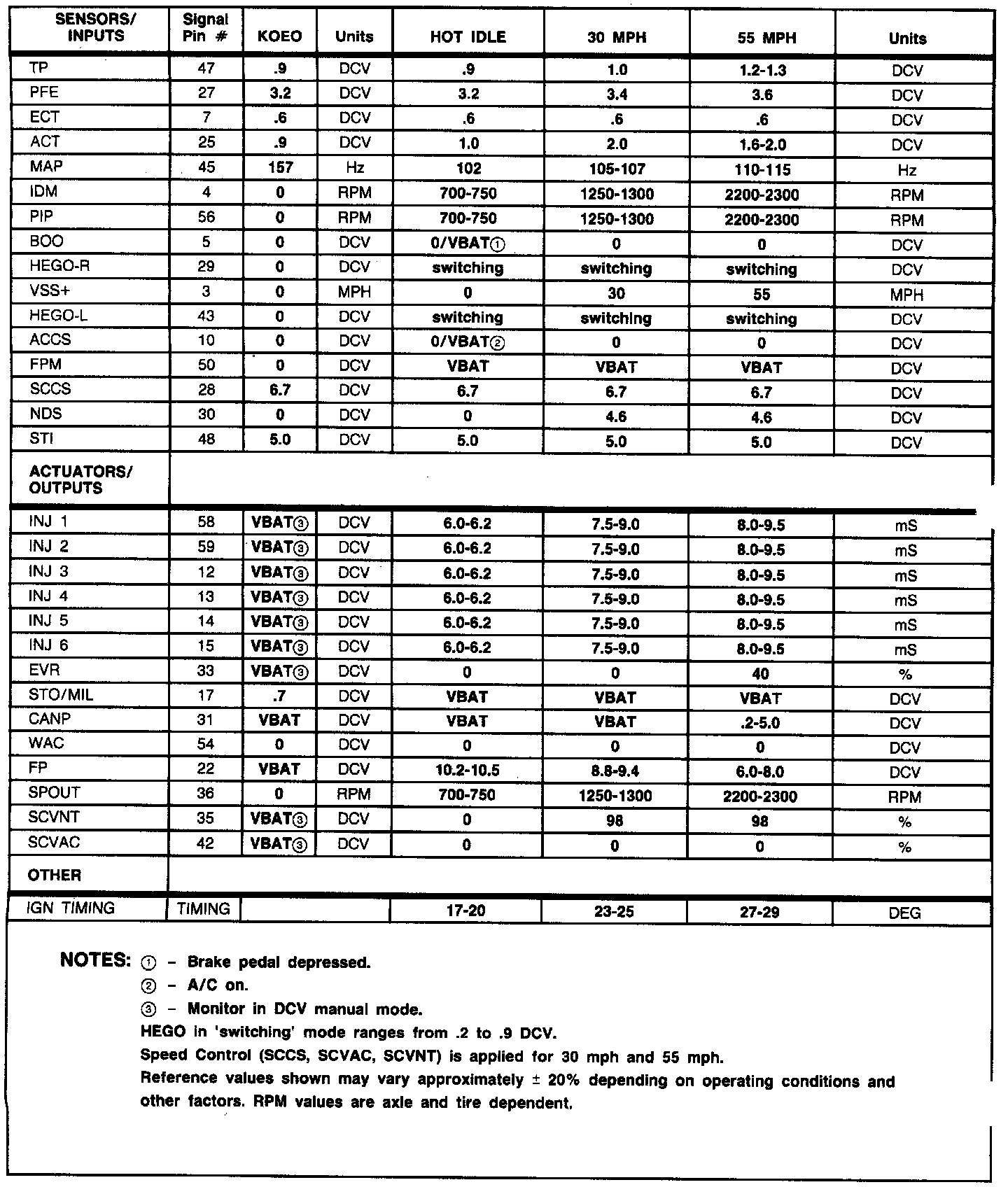 Normal Scan Data Values (Includes PIDs)