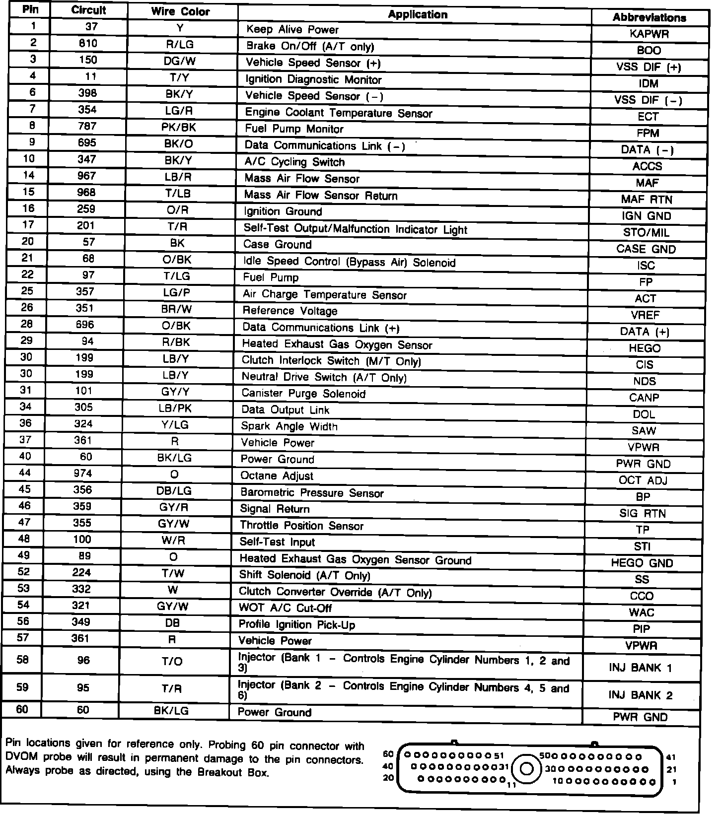 ECA Connector Pin Identification: