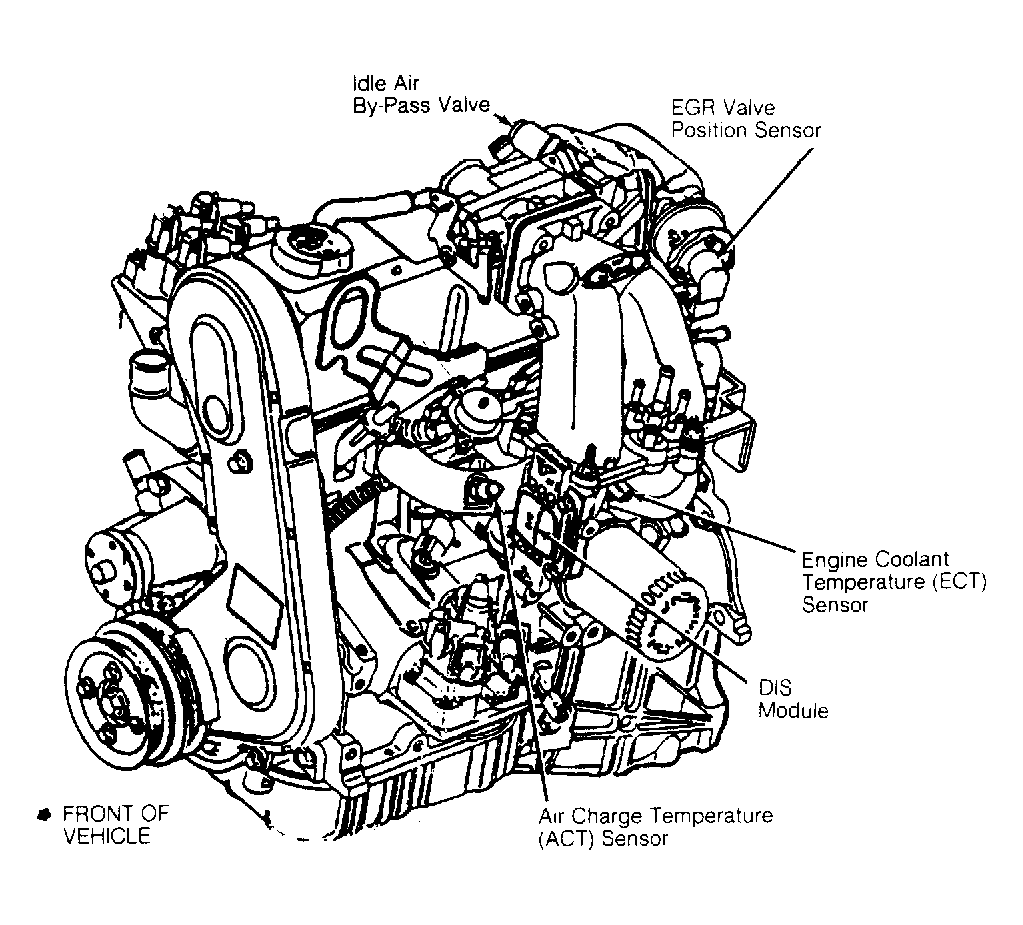 2.3L On front of intake manifold. See Figure .