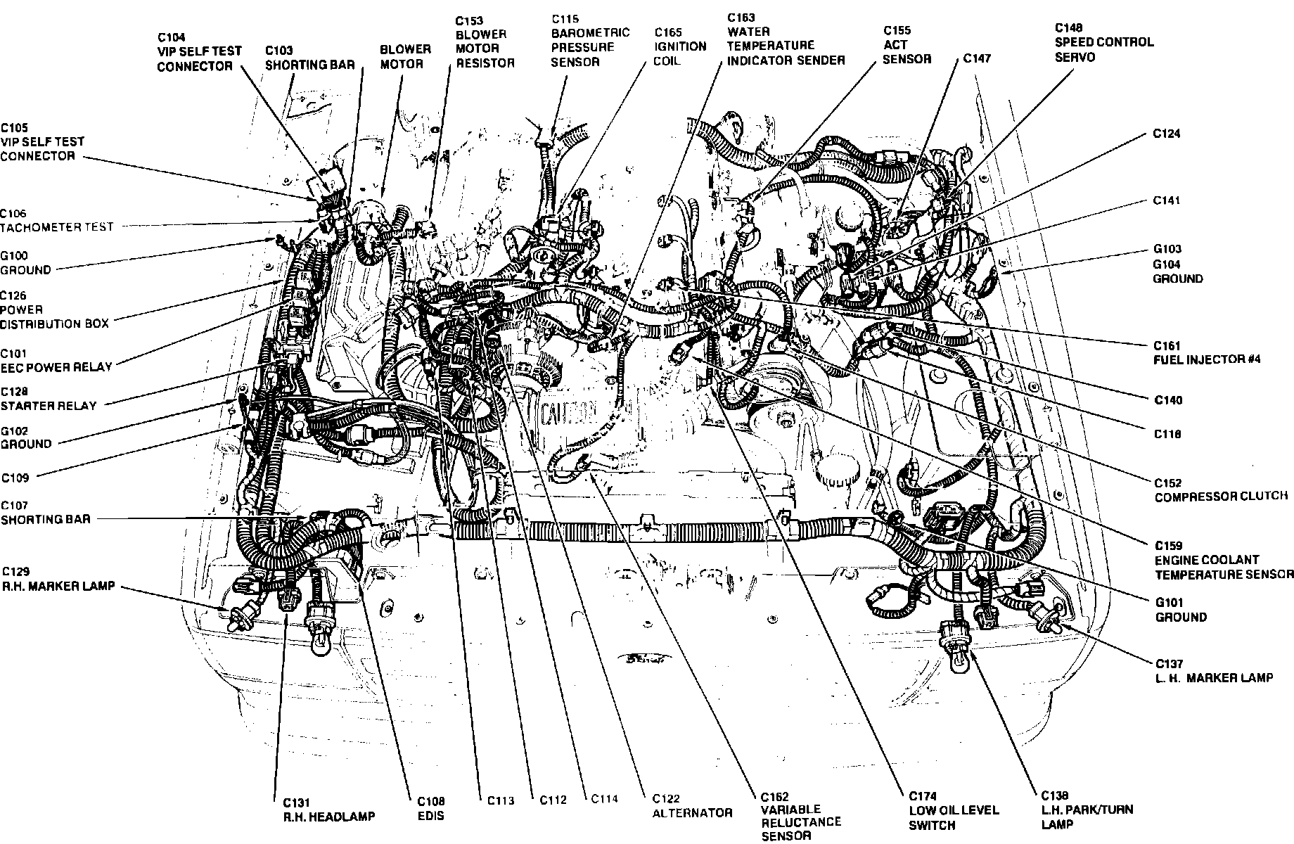The SPOUT connector shorting bar (C107), is located at the RF corner of the engine compartment, near EDIS.