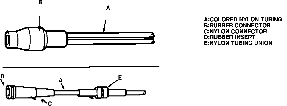 If a nylon harness tube is kinked or broken, and the damaged area is not more than 1/2 inch from a connector, the tube can be repaired by cutting out the damaged section, then installing a rubber union.