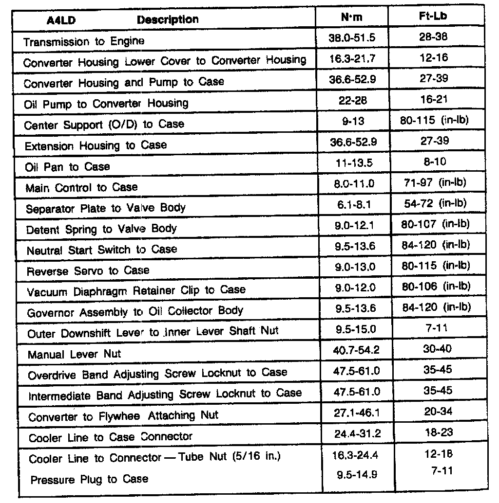 A4LD 4-spd A/T, Transmission Torque: