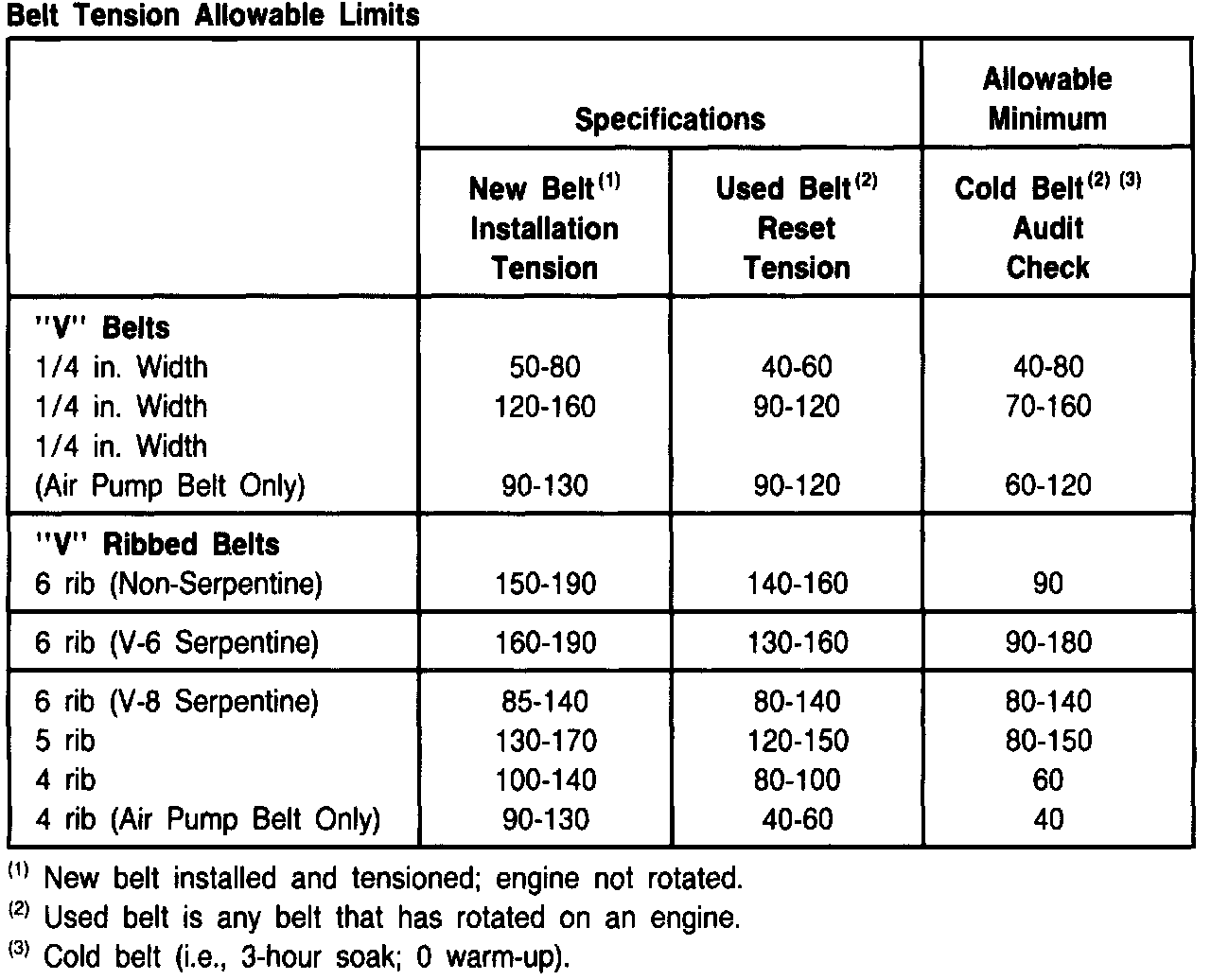 Belt Tension Allowable Limits: