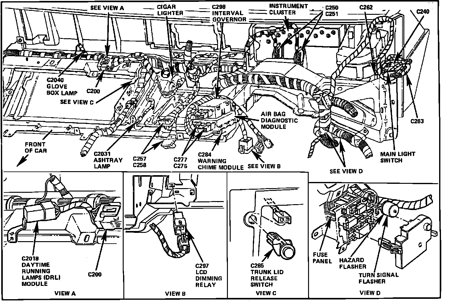 Behind Center Of I/P, Right Of Steering Column