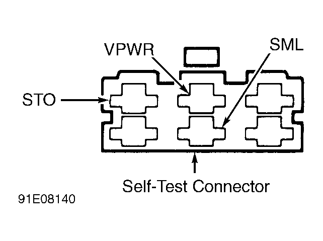 1)  Turn ignition off. To initiate KOEO self-test, connect a jumper wire from self-test connector STI terminal to ground. The STI connector is located at the left rear of the engine compartment. See Figure and Figure .