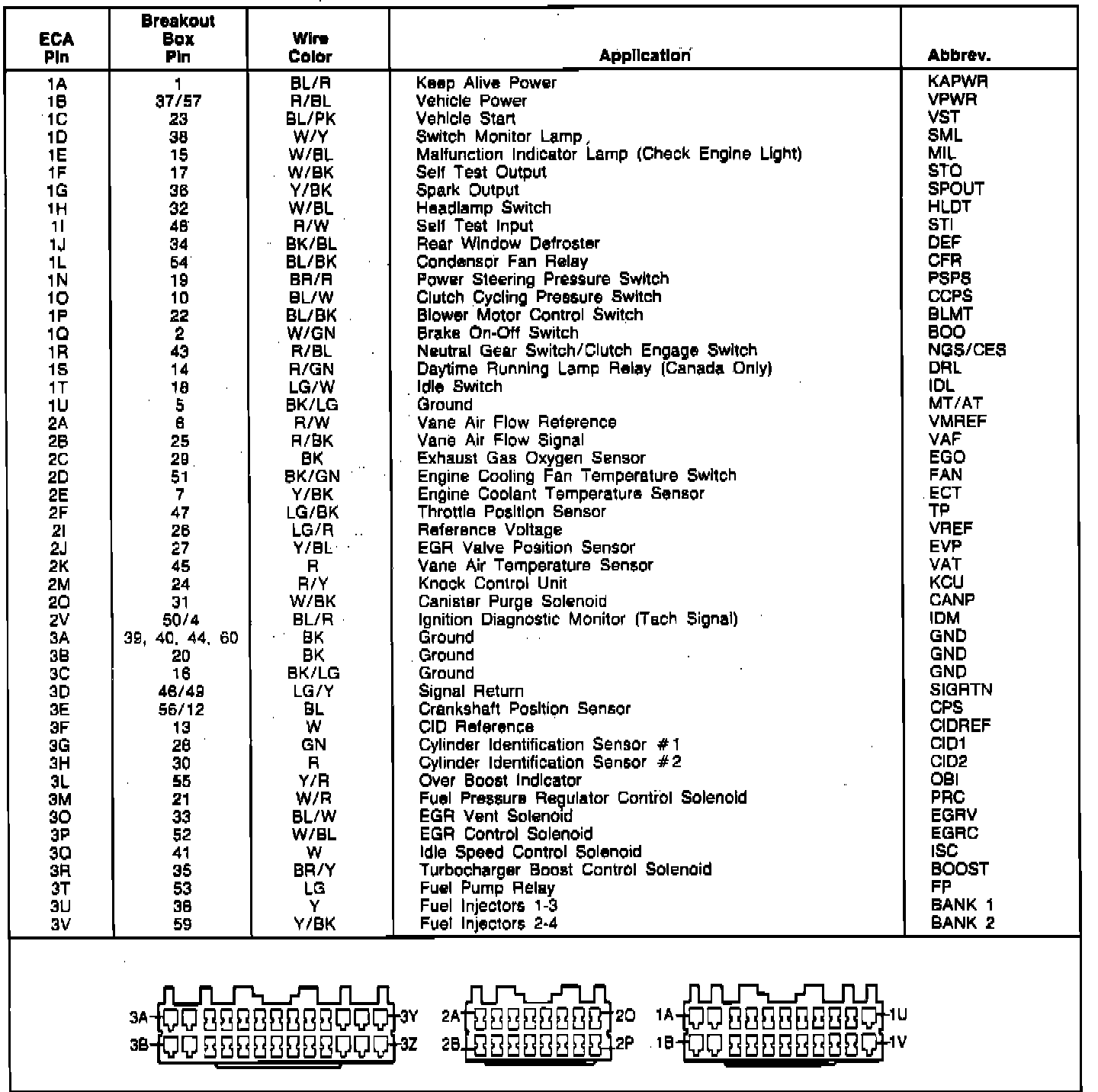 Electronic Control Assembly (ECA) Connector Pin Identification Turbo (MTX):