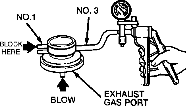 3. Release the exhaust gas port, and verify that vacuum is not held. If vacuum continues to hold the transducer is defective and must be replaced.