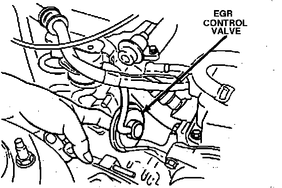 1. Manually actuate the EGR valve diaphragm with a finger, make sure the valve operates freely, and that spring tension is present. If the valve will not move and/or there is no spring tension, the valve is defective and must be replaced.
