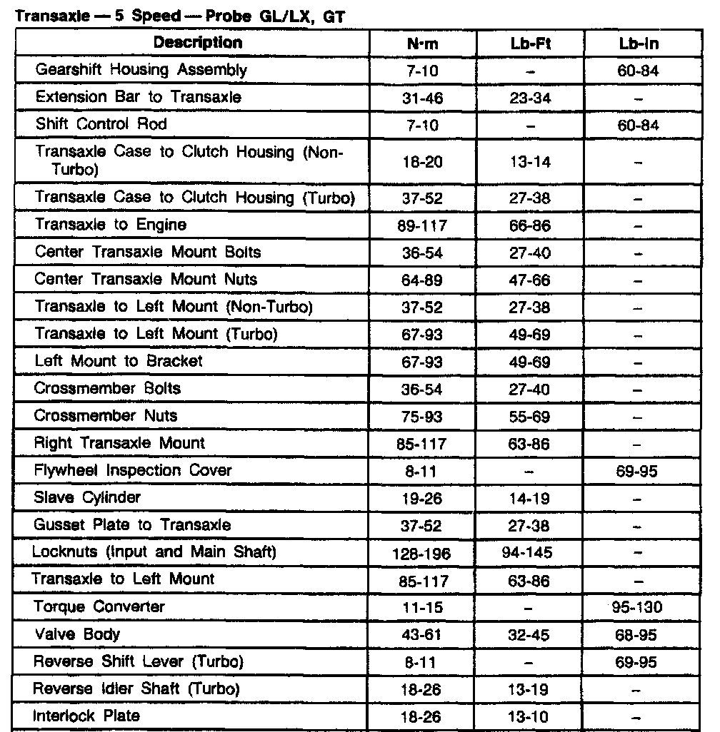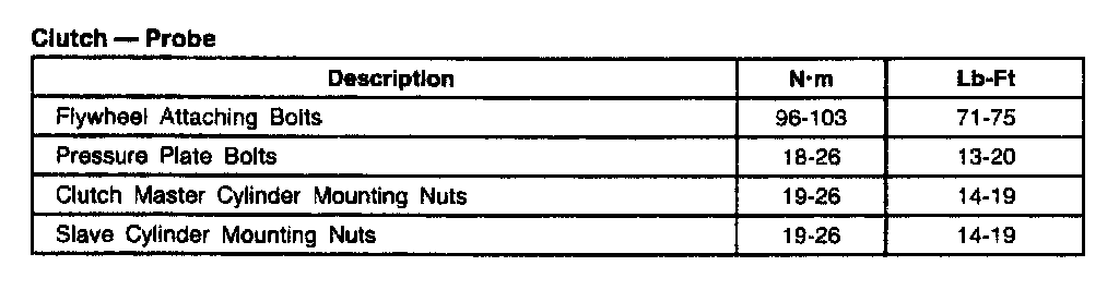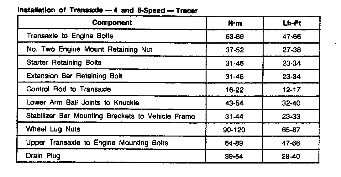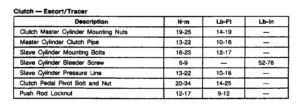 MTX (A) 5-spd M/T, Clutch Torque (Escort/Tracer):