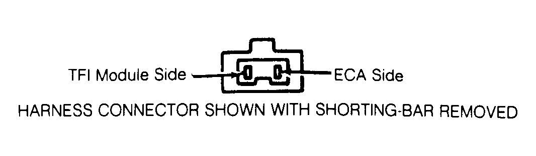 - Attach negative (-) voltmeter lead to distributor base and positive (+) lead to TFI module side of the SPOUT connector. Start engine and measure voltage at idle. Measure voltage at ECA side of SPOUT connector.