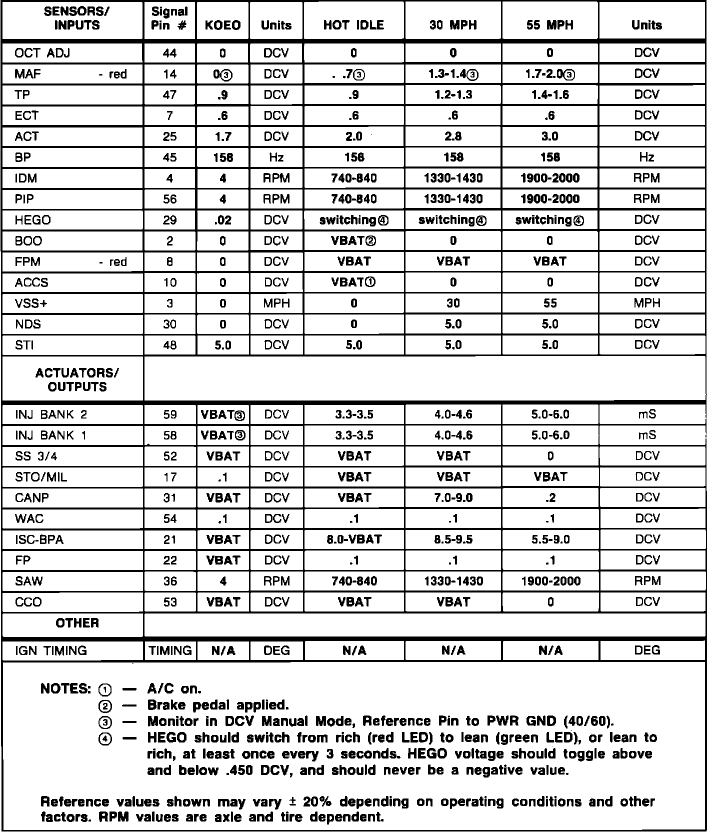 Normal Scan Data Values (Includes PIDs)