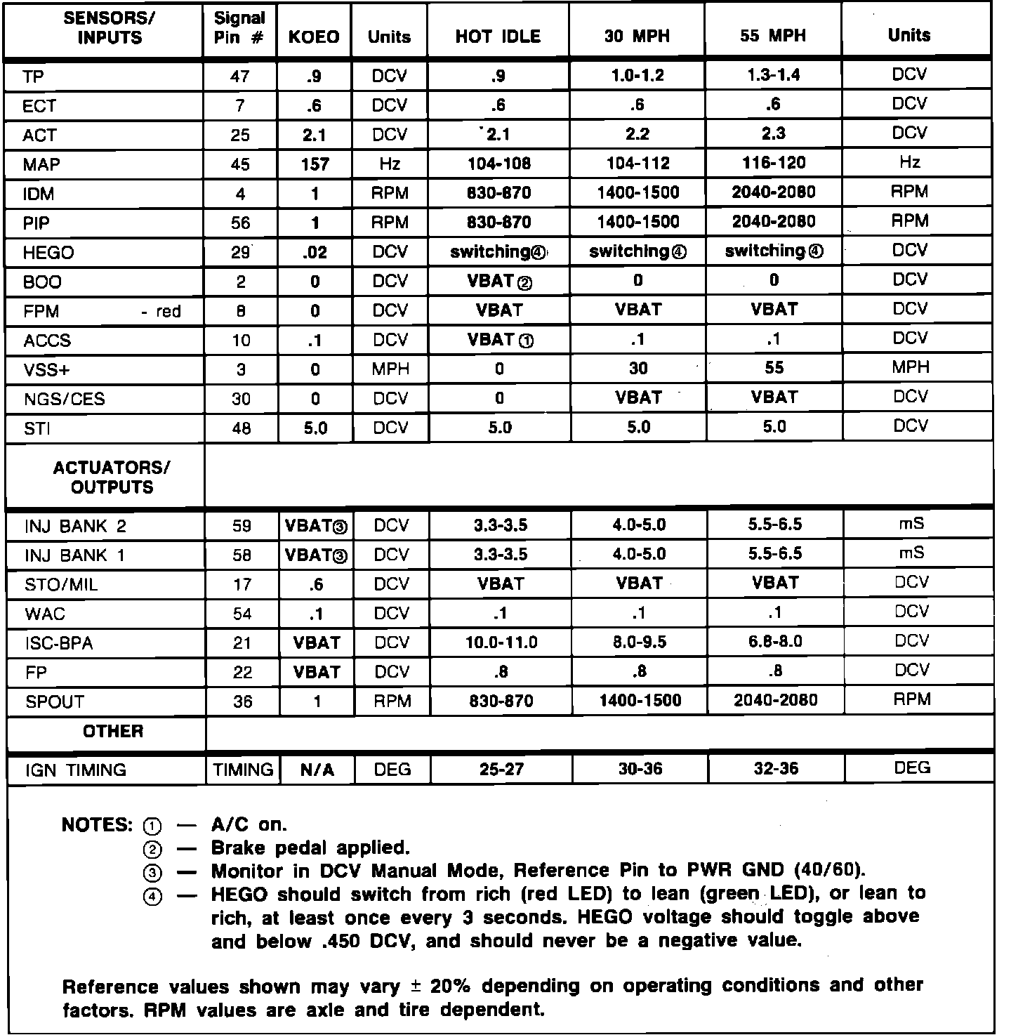 Normal Scan Data Values (Includes PIDs)