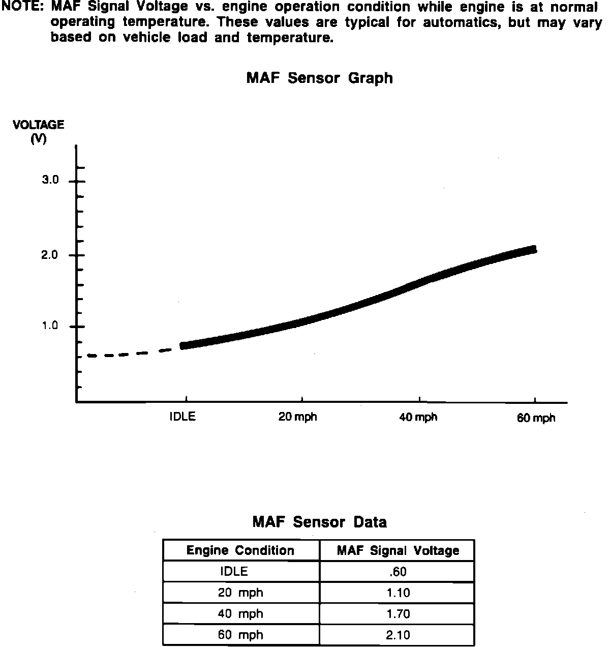 Pinpoint Test DC, Mass Air Flow Sensor Data Chart: