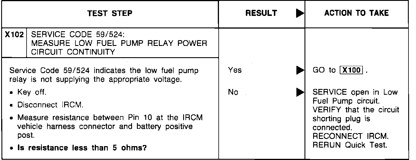 X102 - Measure Low Fuel Pump Relay Power Circuit Continuity