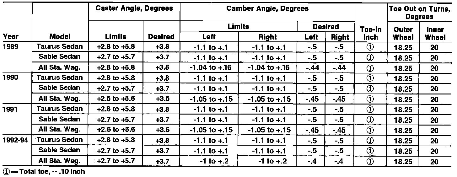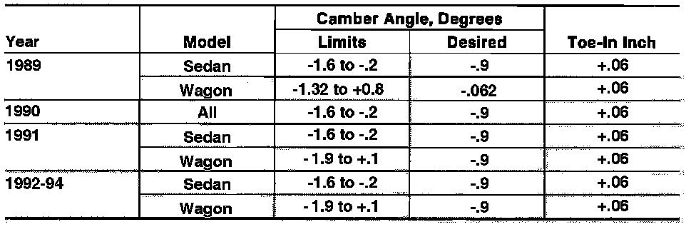 Front Wheel Alignment Specifications:
