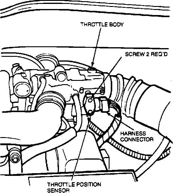 CAUTION: Slide slot into position over the throttle shaft blade, then rotate the TP sensor CLOCKWISE to installed position. Failure to install the TP sensor in this manner may result in excessive idle speeds.