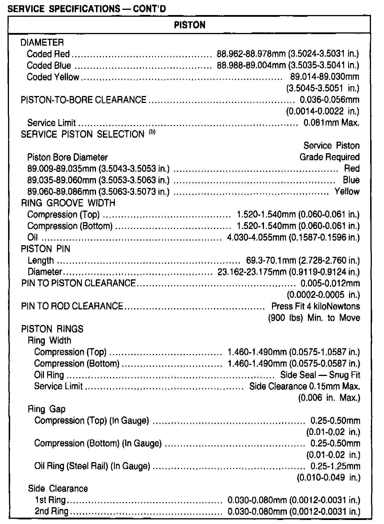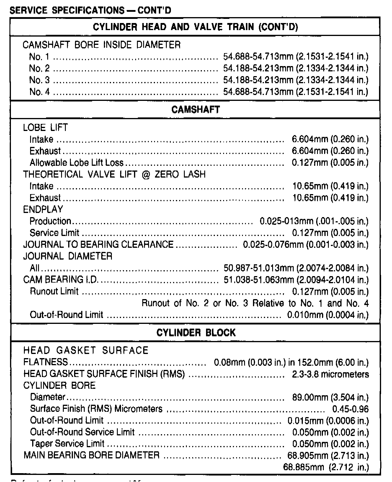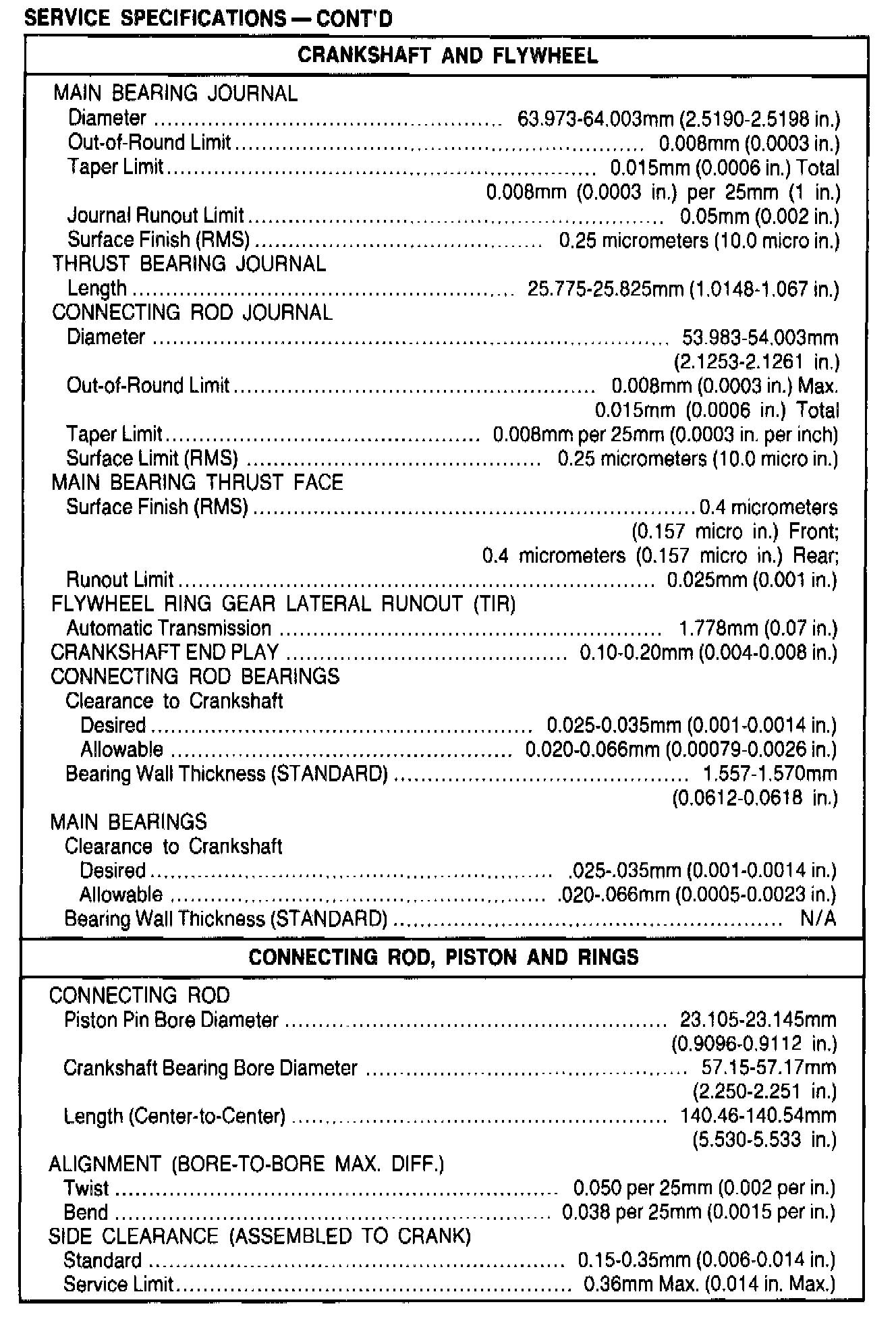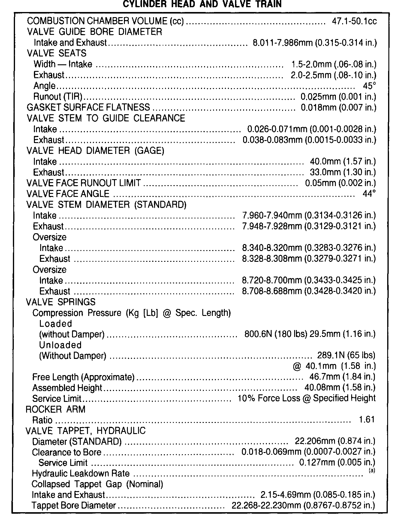General Engine Specifications