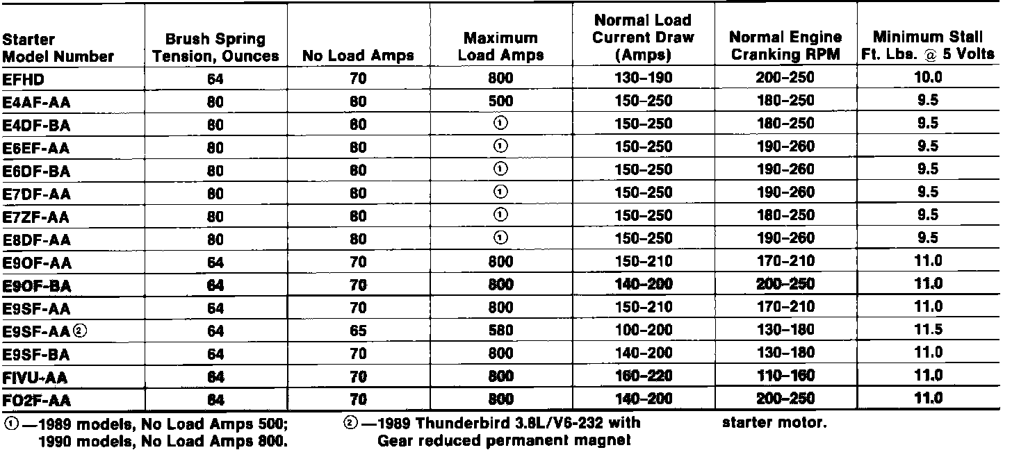Starter Motor Specifications: