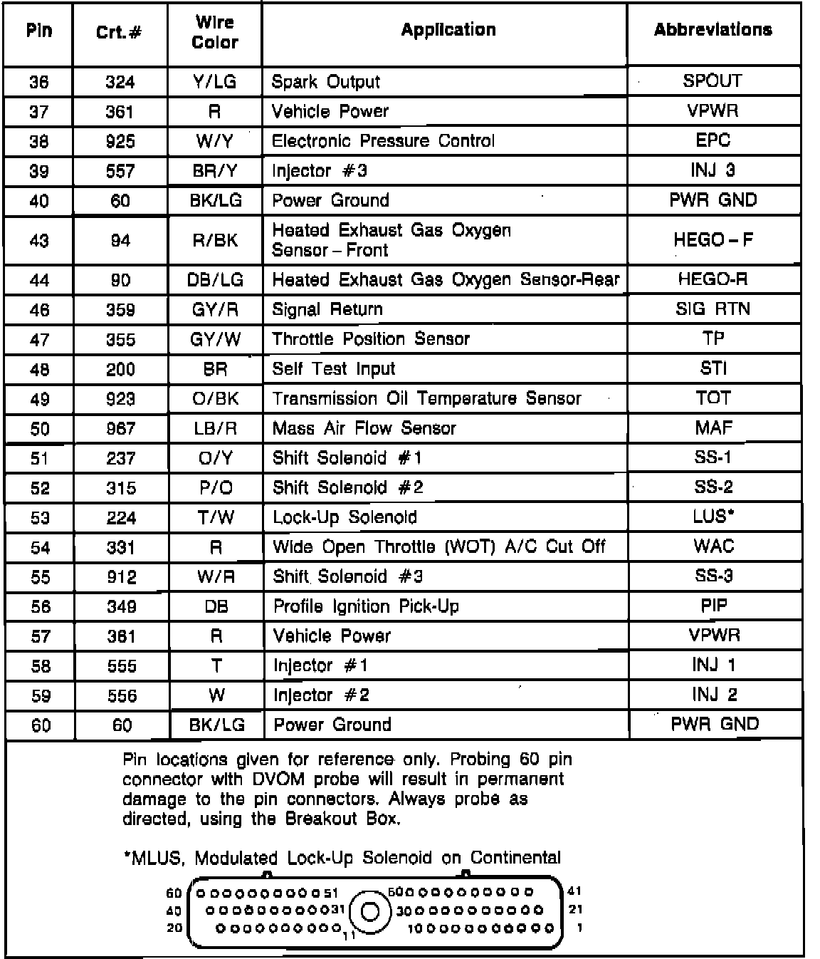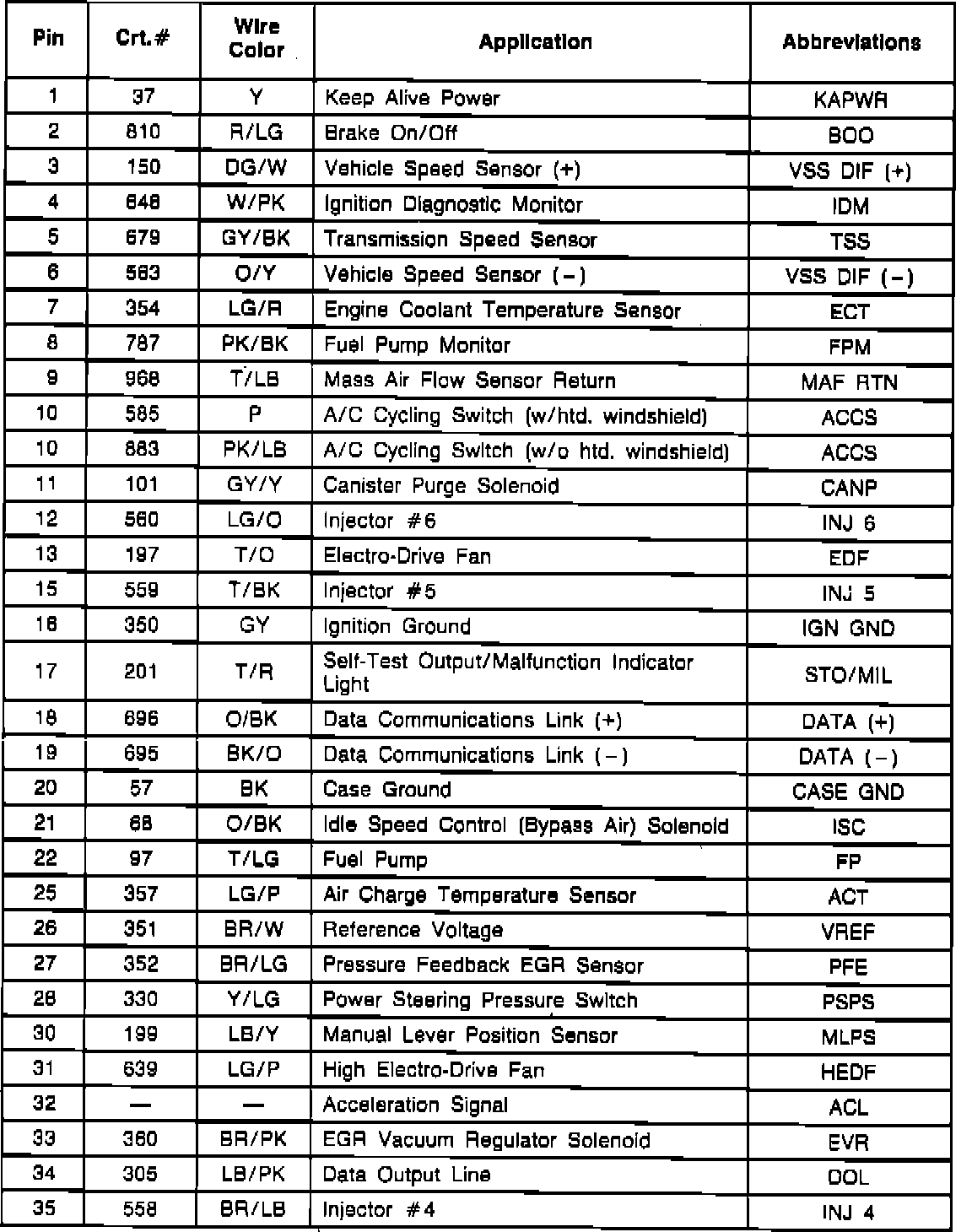 Electronic Control Assembly (ECA) Connector Pinout: