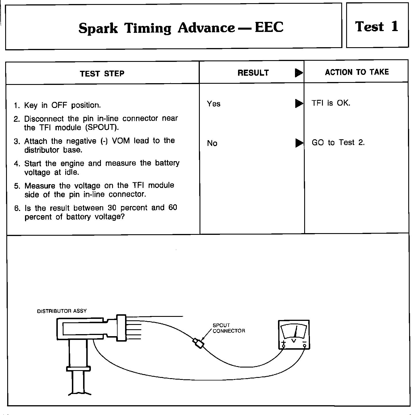 Home >> Ford >> 1991 >> Taurus V6-232 3.8L >> Repair and Diagnosis >> Powertrain Management >> Ignition System >> Ignition Timing >> Testing and Inspection