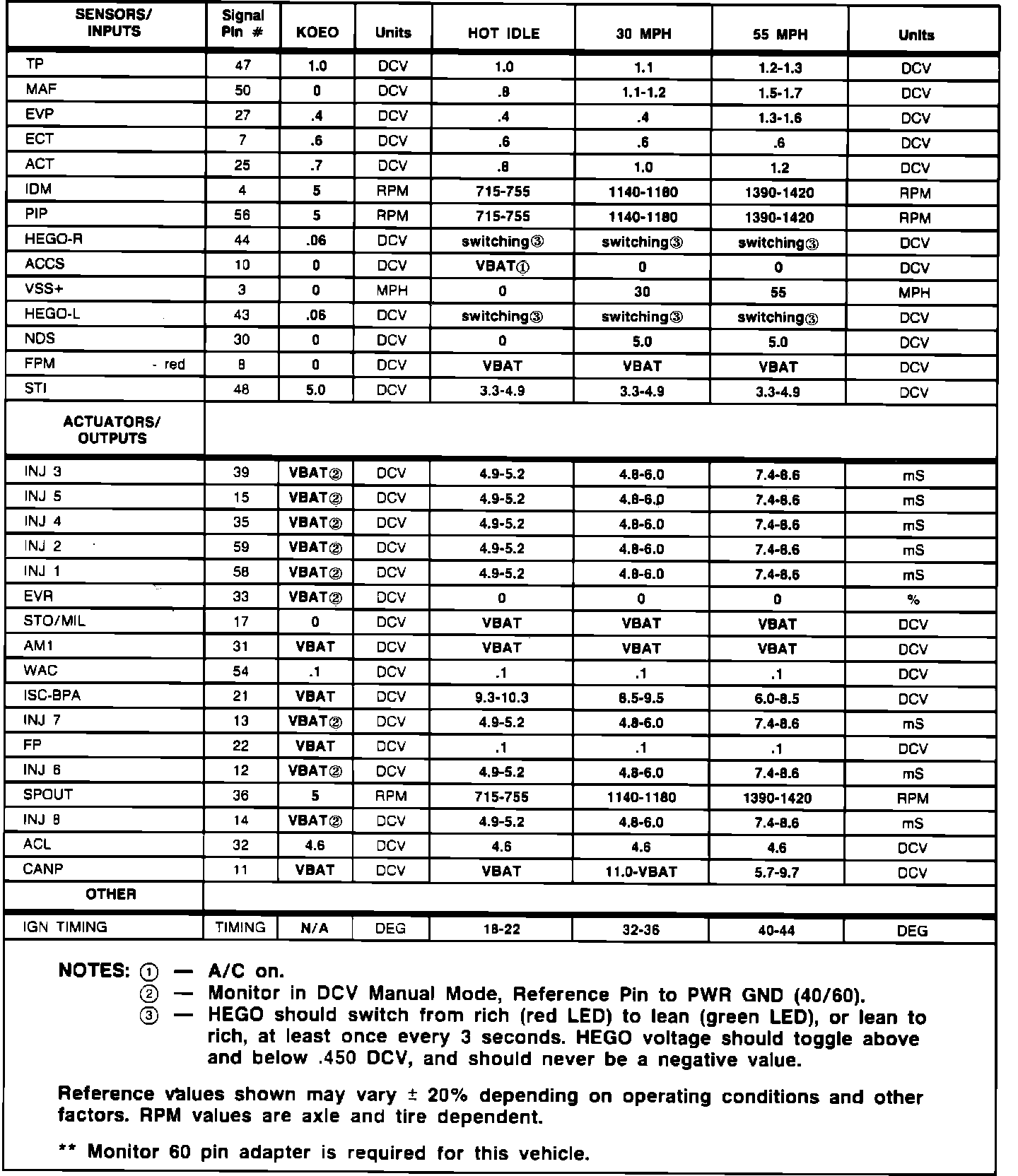 Normal Scan Data Values (Includes PIDs)