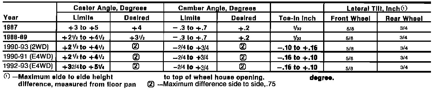 Wheel Alignment Specifications: