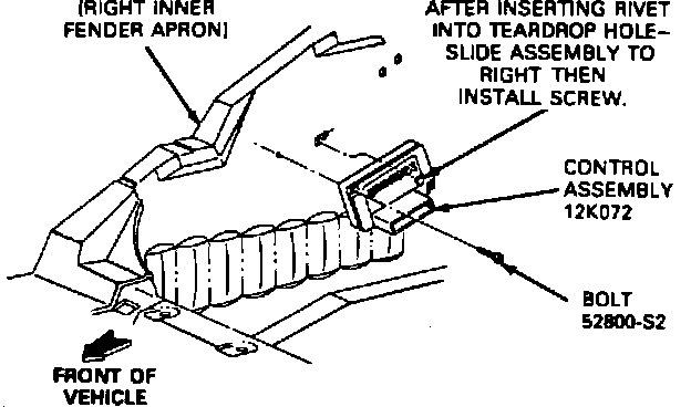 1. Place the module on the sheet metal so the retaining rivet passes through the hole, then slide the module down into position. Install the retaining bolt bolt, torquing to 22-31 in lb (2.2-3.5 Nm).
