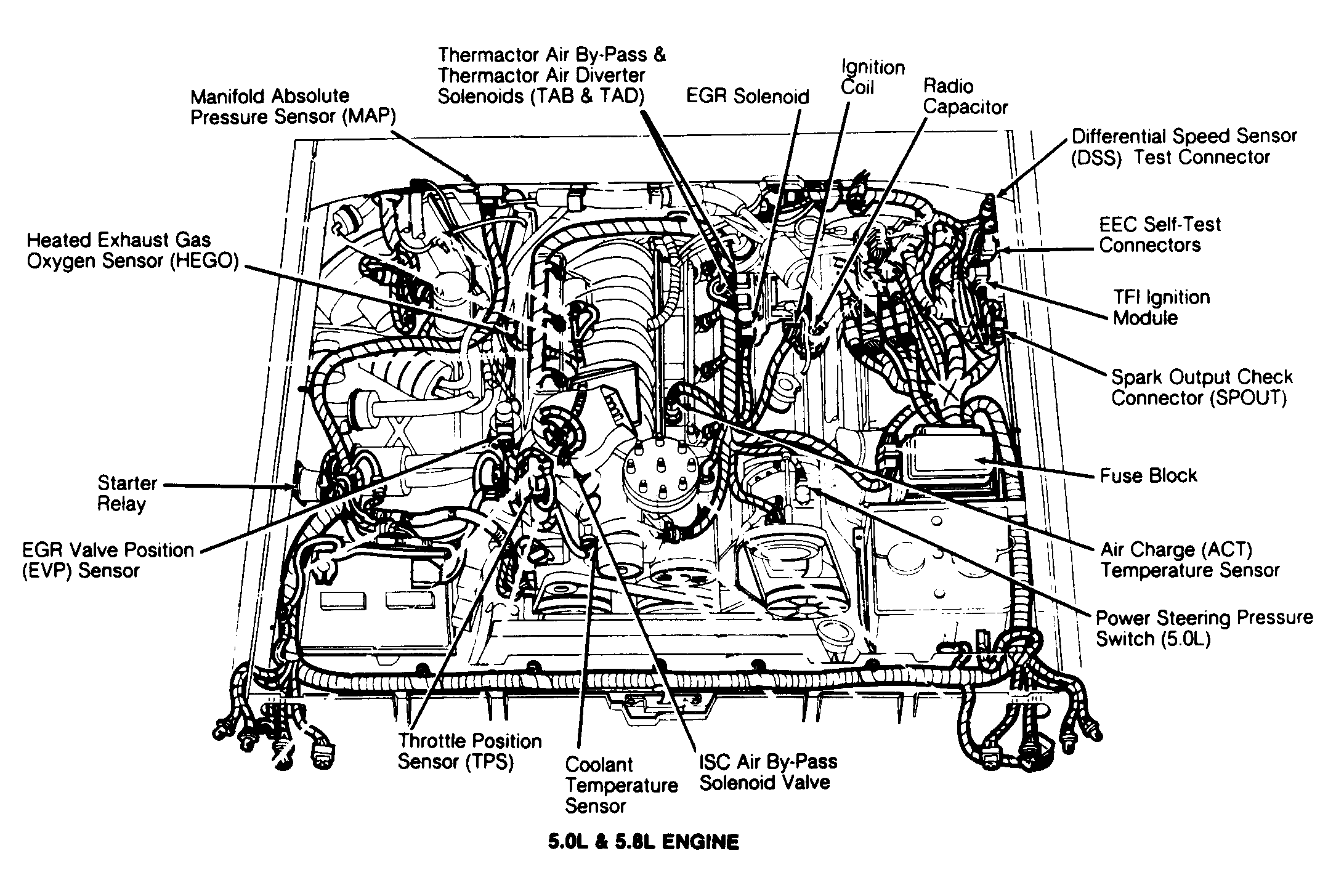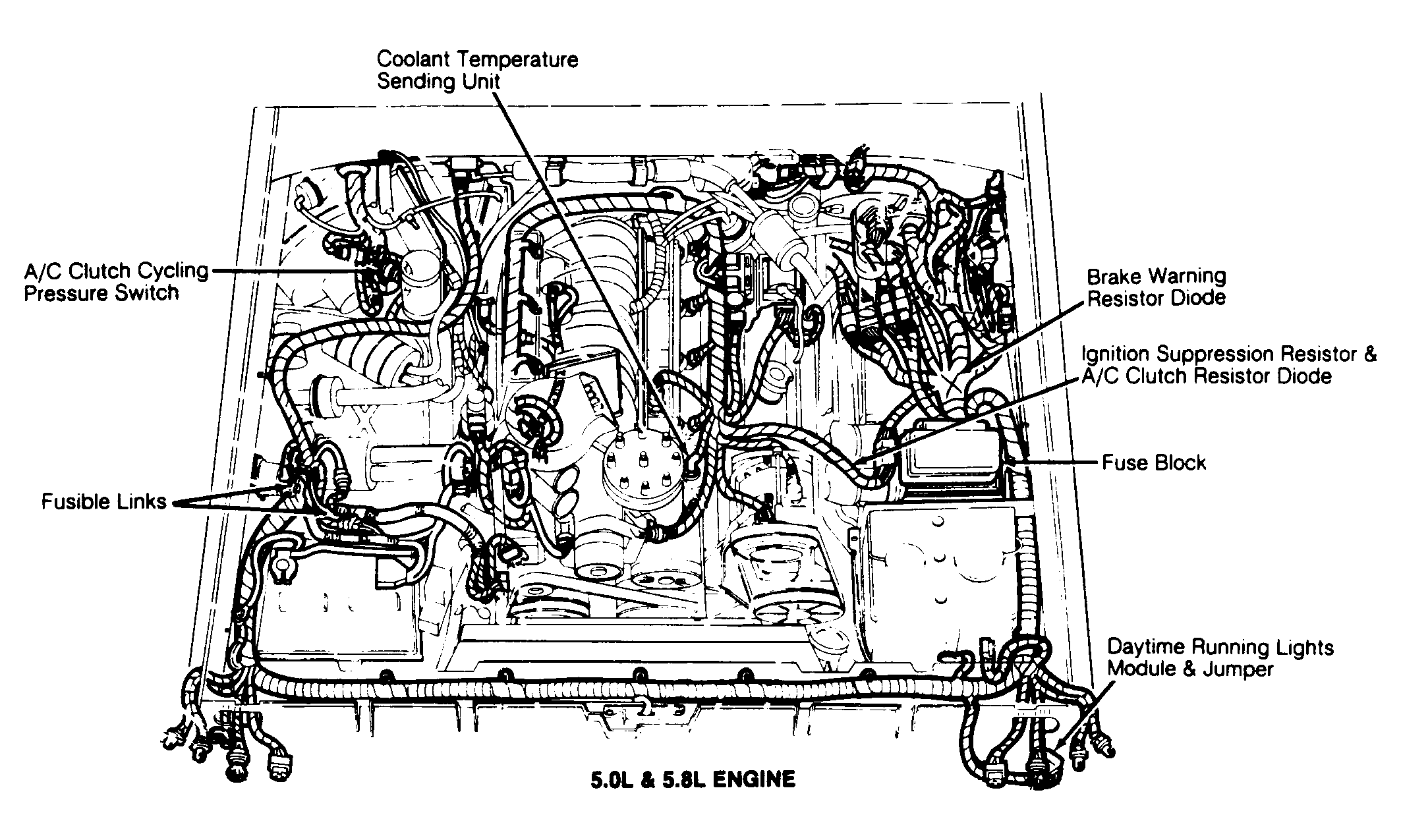 | 5.0L & 5.8L | On left inner fender panel. See Figure & Figure . | ||