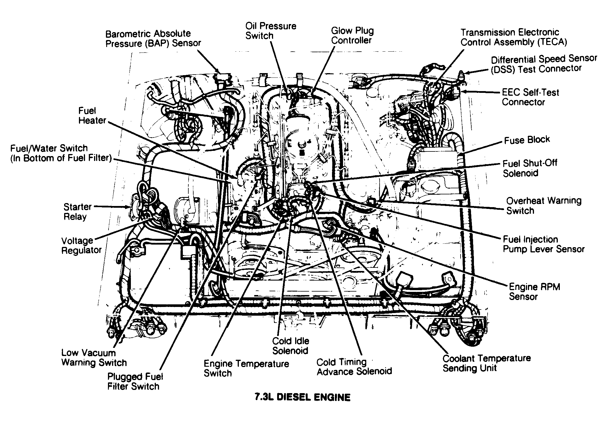 | 7.3L (Gray 12 Ga.) | Near starter. | ||