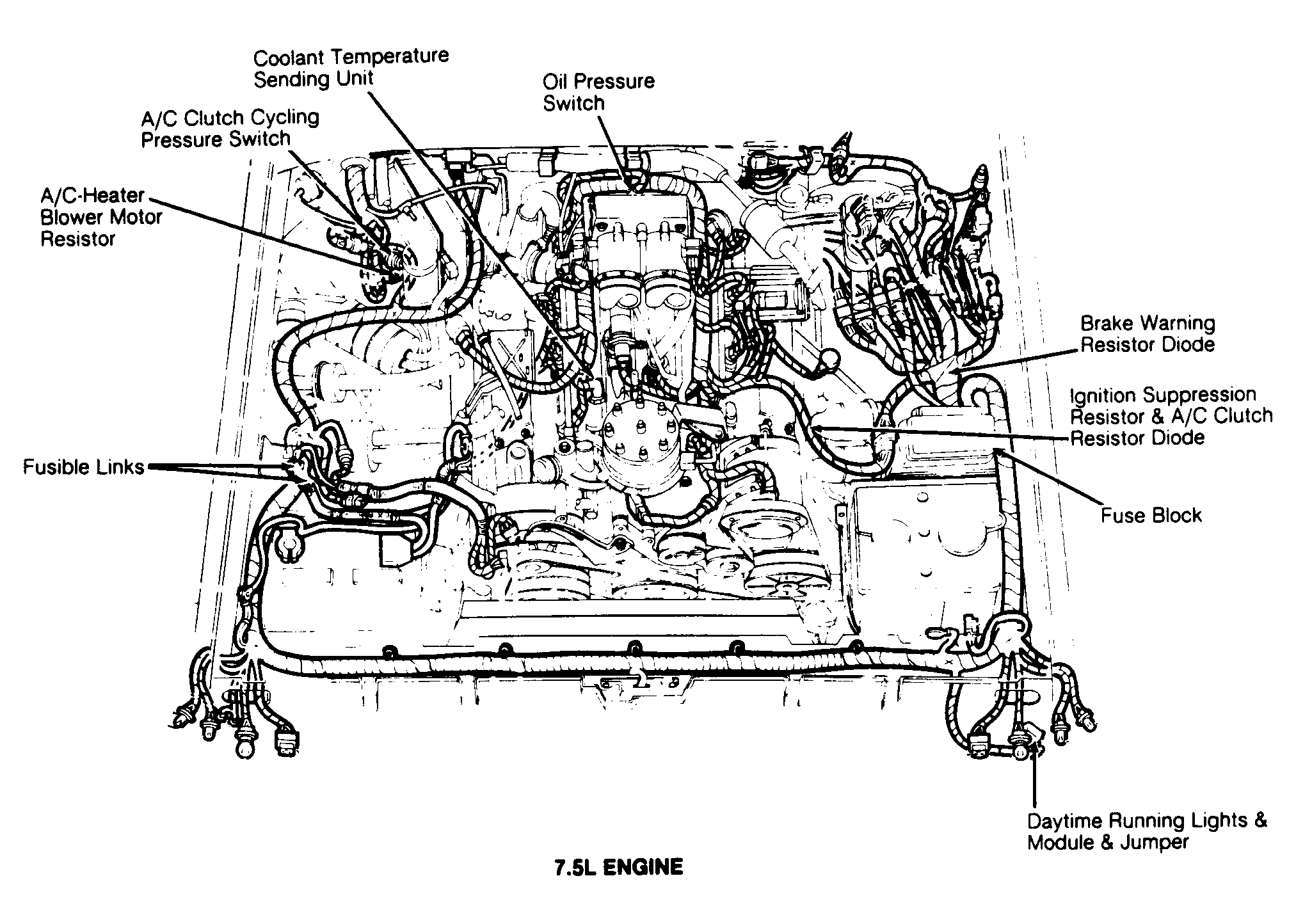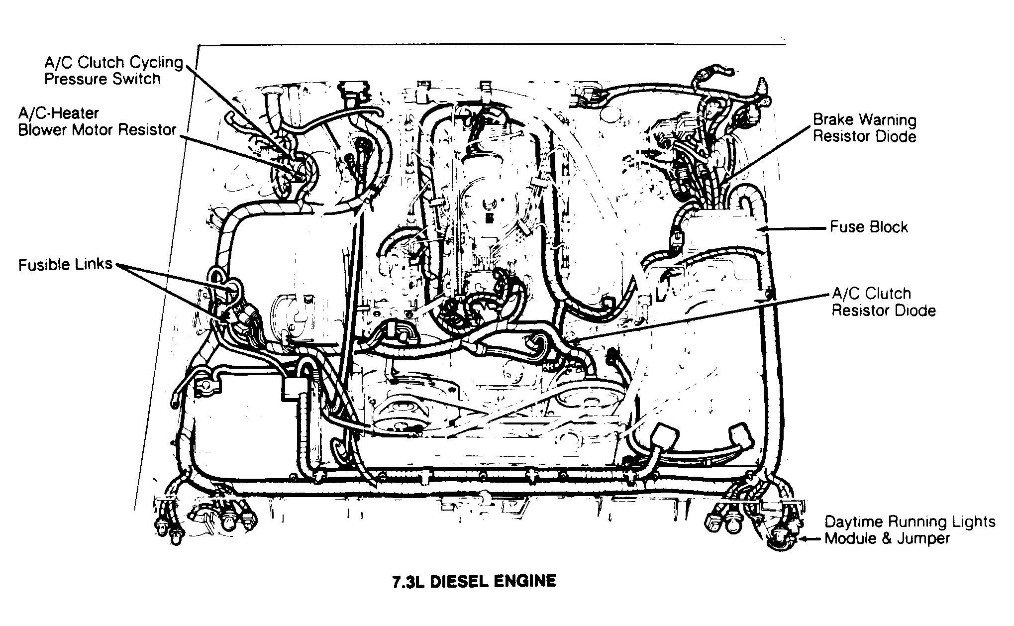 | 7.3L (Gray 12 Ga.) | Near starter relay. | ||