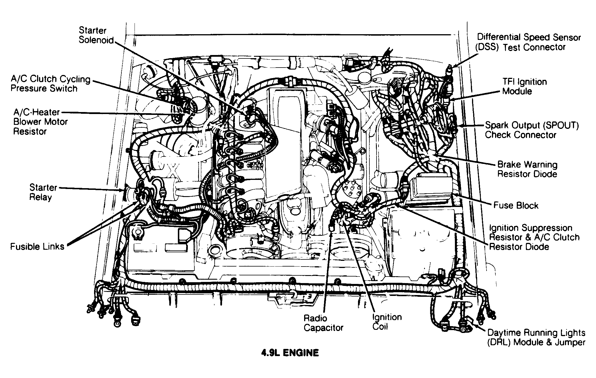 | 4.9L | On left inner fender panel. See Figure & Figure . | ||
