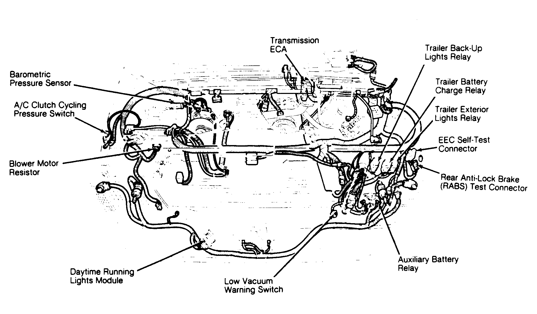 | Transmission ECA (7.3L Diesel) | On left side of firewall, near master cylinder. See Figure. | |