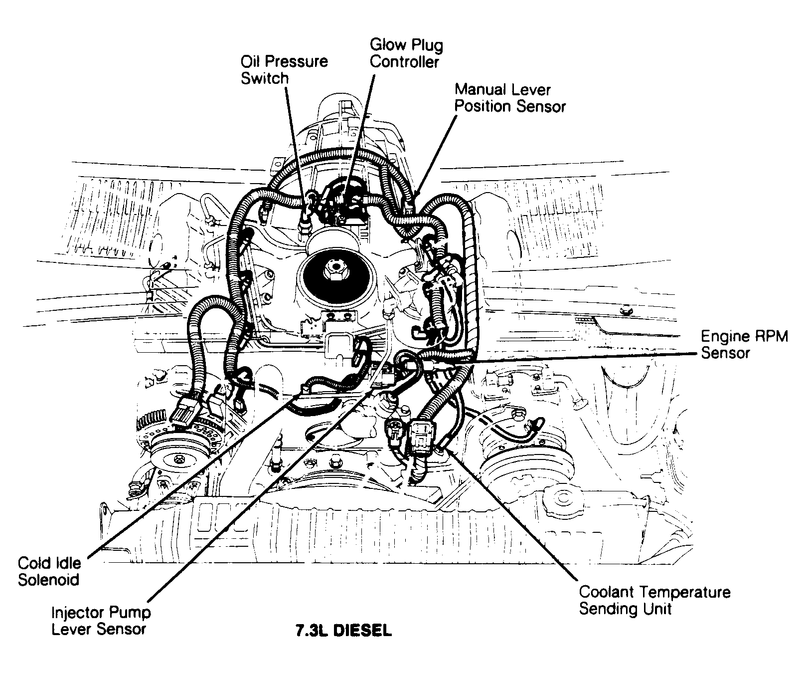 | Glow Plug Controller (7.3L Diesel) | On top rear center of engine. See Figure. | |