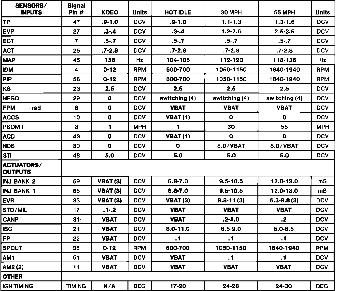 Normal Scan Data Values (Includes PIDs)