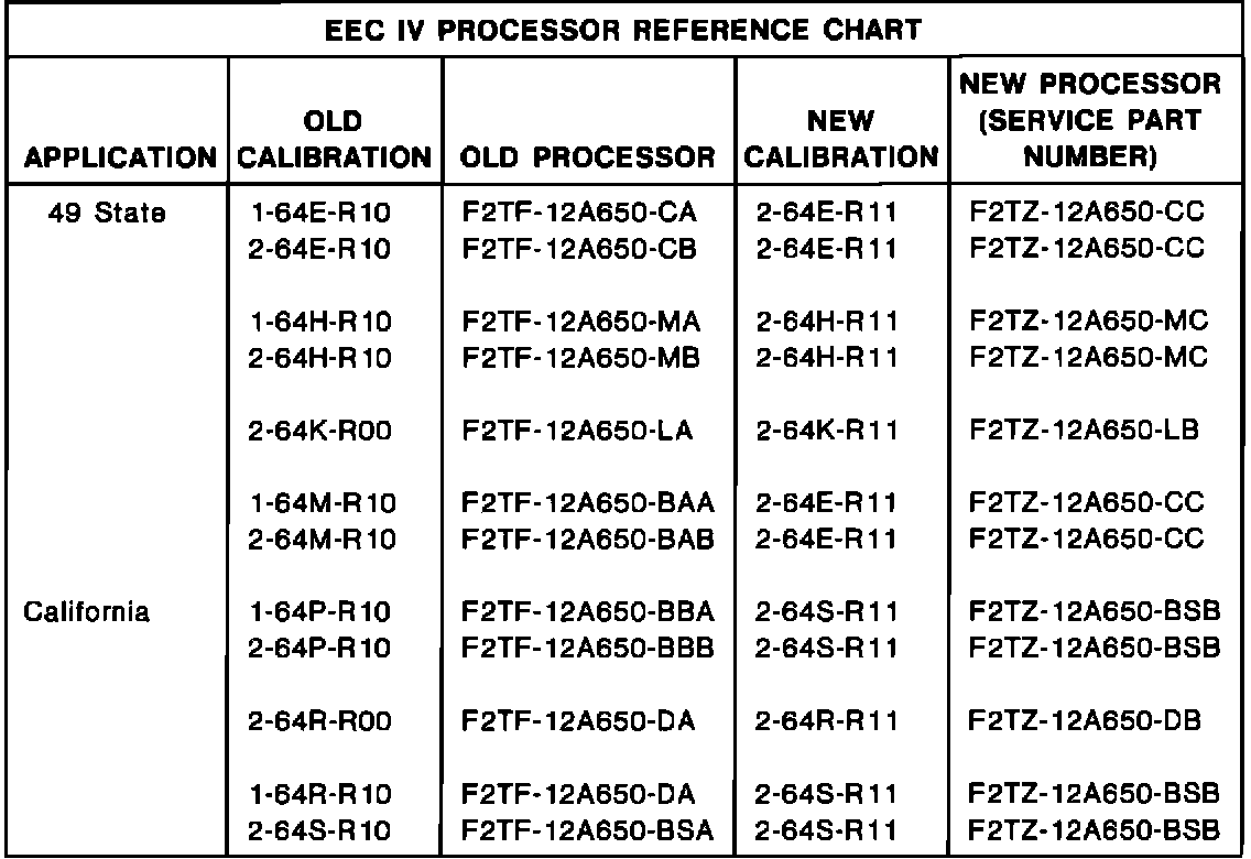 EEC IV PROCESSOR REFERENCE CHART