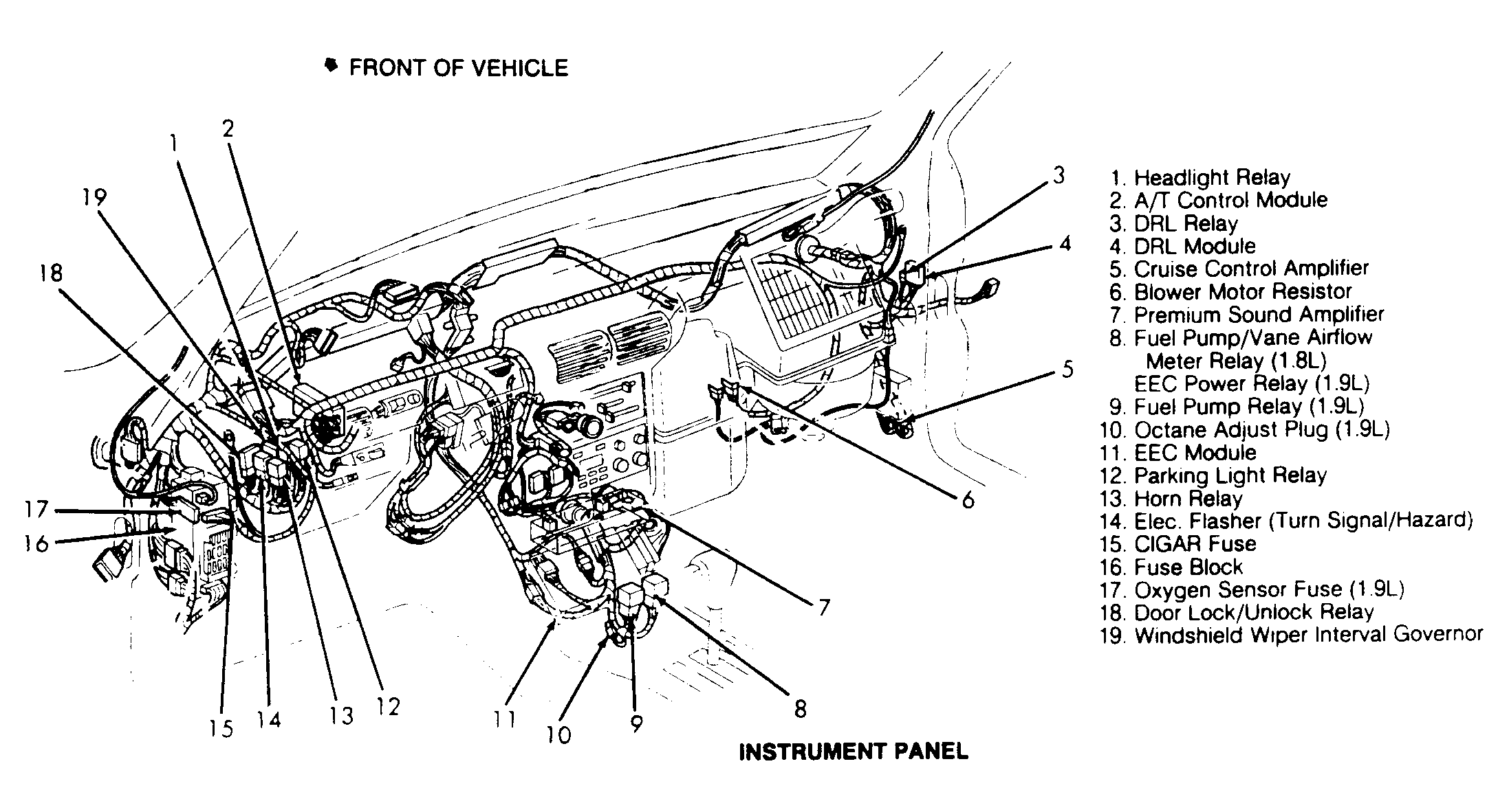 | Oxygen Sensor Fuse (1.9L) | Above instrument panel fuse block. See Figure . | |